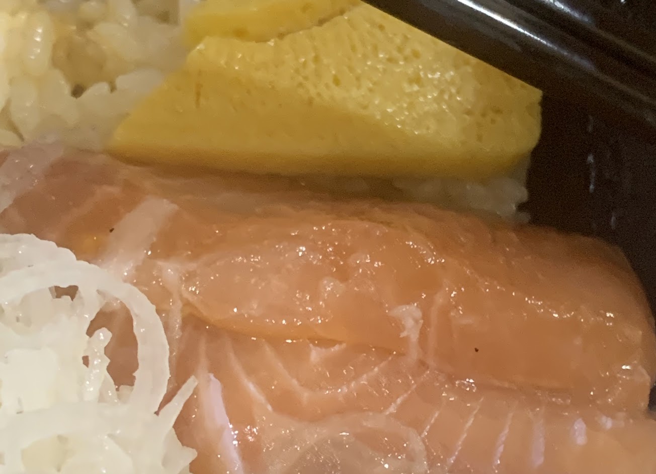 烤鮭魚,鮭魚卵親子丼的鮭魚不新鮮,這應該是我吃過最難吃的丼飯吧⋯⋯
