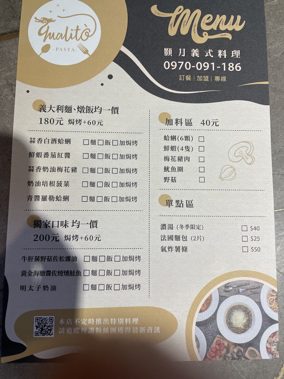 2024最新在地推薦餐廳的菜單_顥月義式料理 – (市場整修中近期恢復營業)的菜單、圖片