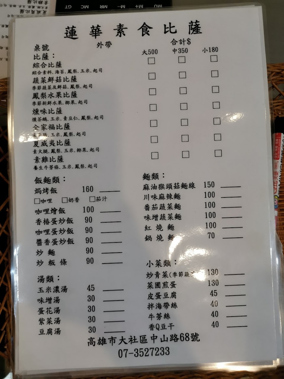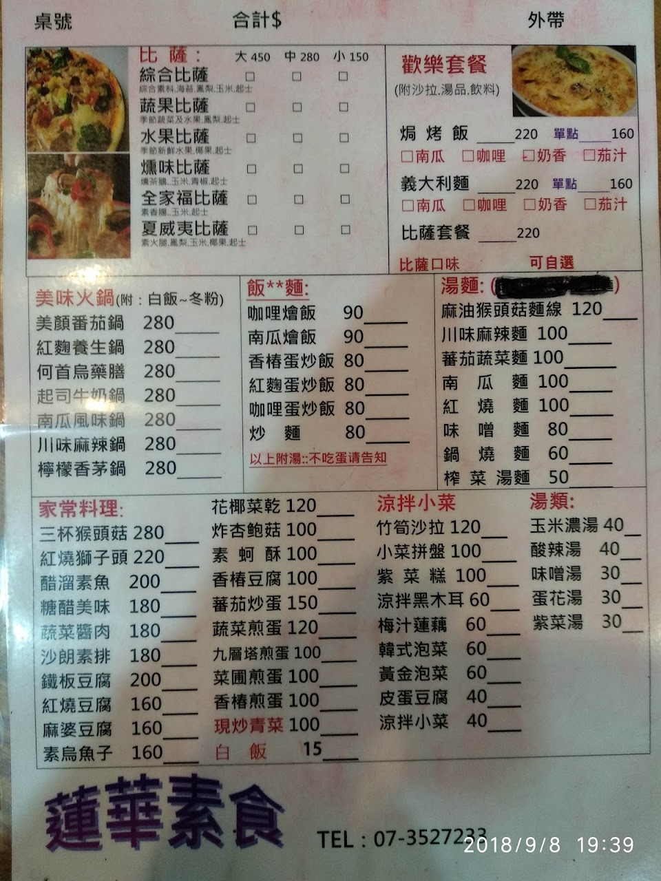2024最新在地推薦餐廳的菜單_蓮華素食比薩的菜單、圖片