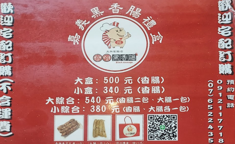 香腸跟大腸是用炭火烹煮(有一股炭香味?)大腸吃起來比較普通,黑香腸有股特殊香味(好吃?)可以先打電話訂餐,可以節省排隊時間