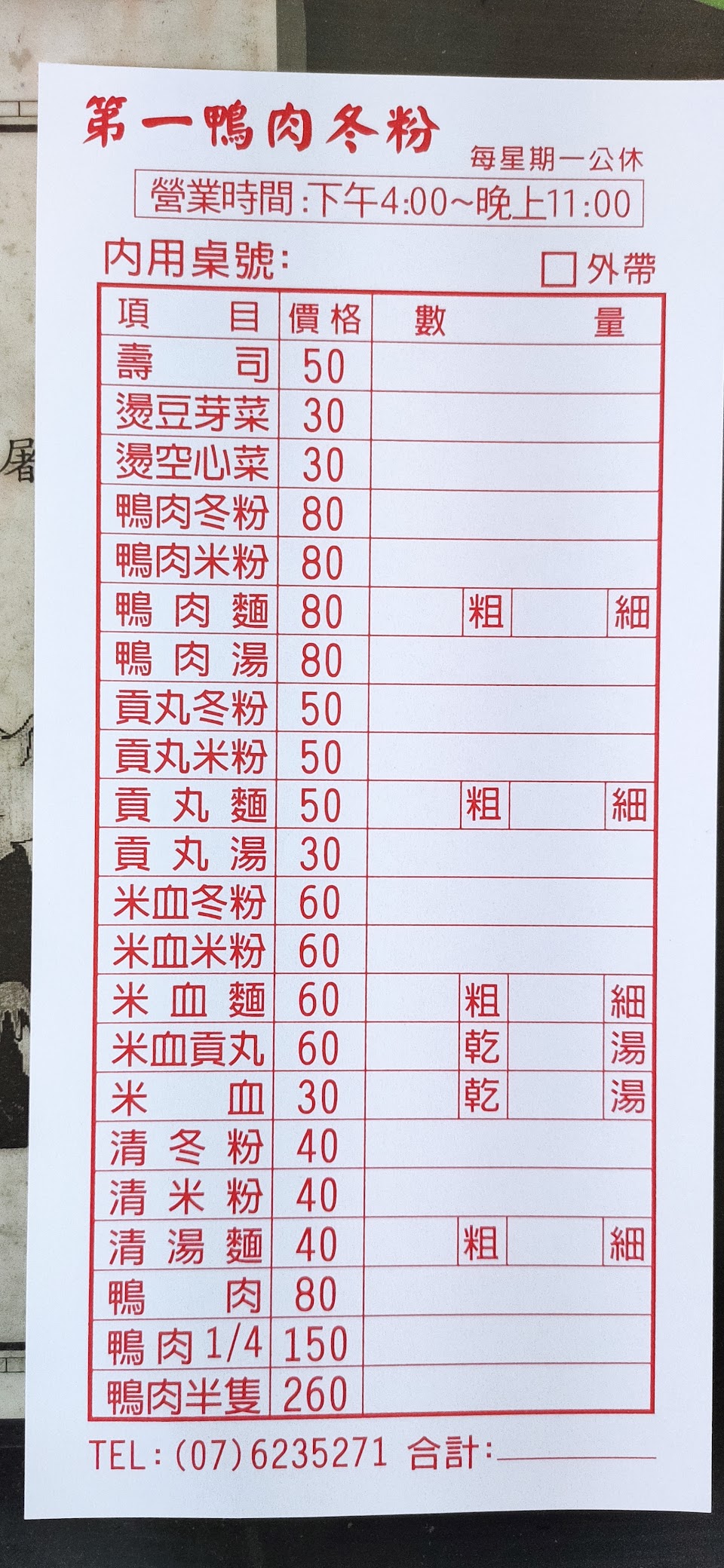 2024最新在地推薦餐廳的菜單_第一鴨肉冬粉的菜單、圖片