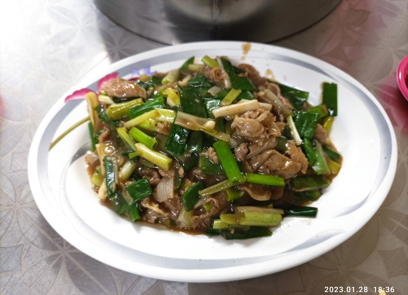 蔥爆羊肉不推,蔥段很老像吃雜草