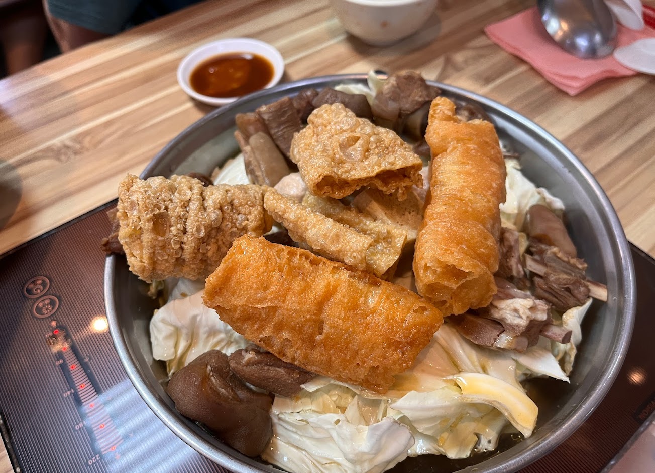 帶皮羊肉爐好吃,推薦一定要點,羊肉的膠質滑嫩且肉質柔軟,但是量感覺有點少,且室內冷氣不夠強,濕度極高,因此夏天不適合食用鍋物,快炒、特殊料理倒是不錯。