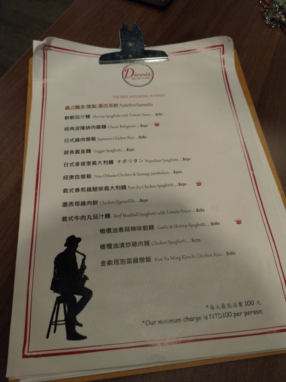我已經認識Dennis 快9年了。剛來台灣的時候Dennis就變成我第一個台灣人的朋友。所以我回饋可能有偏見~ 在Dennis Bistro可以放鬆一下喝點酒跟老闆聊聊天或是享受播放的爵士樂音樂。這次我們點了墨西哥玉米片(nachos)很好吃! 在這裡酒精飲料價錢比市區還要便宜,主餐選擇很多也都很平價。