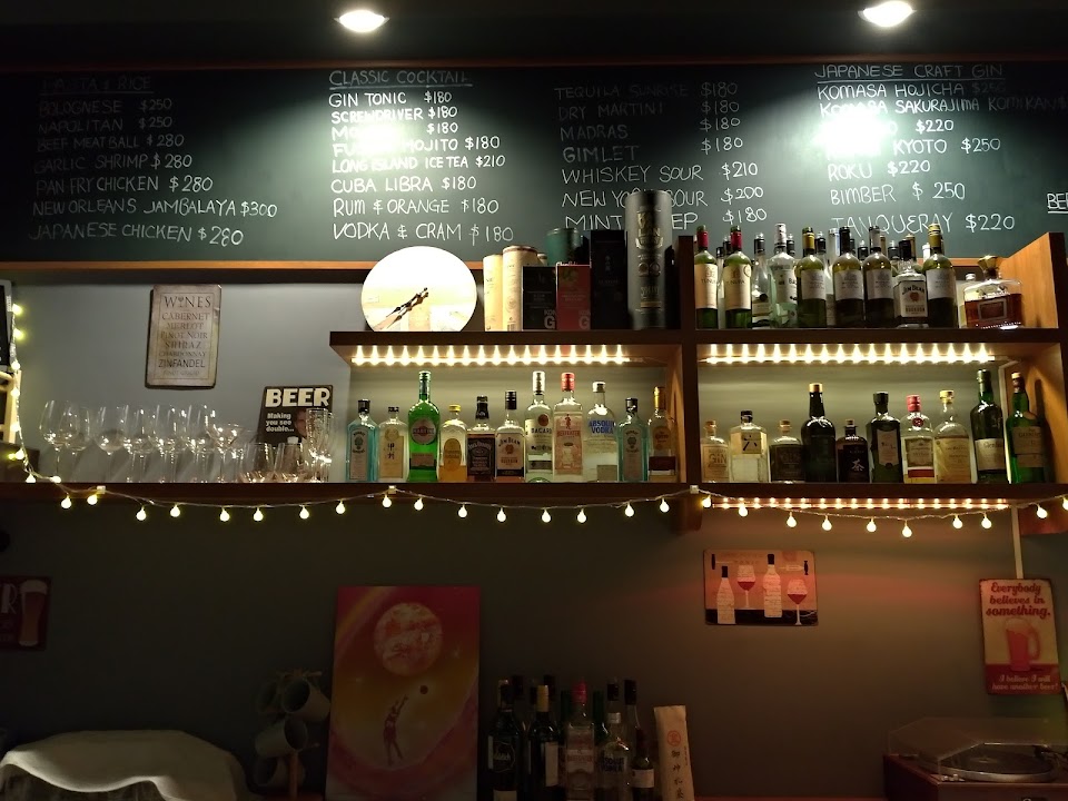 從格局還有位置來看,應該是老闆在自家一樓經營的餐酒館,室內空間不多,座位(餐桌、吧台)約12人,當天21:00-23:00用餐,過程只有我們這組客人,偶爾看看電視上播放的亞運直播,配美食、調酒,很輕鬆自在的環境。餐點選擇不多,但我們都覺得很好吃,老闆親自烹煮,義大利麵很入味,披薩、烤餅的風味都恰到好處,不會過鹹或油膩,清爽好吃?調酒的價位平價,雖然沒有高級感,但是以坐落於住宅區的餐酒館來說,可以給五顆星星囉!