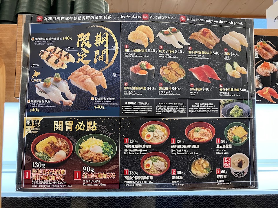 壽司基本上都蠻好吃,而且沒有遇到像壽司郎那般,有時候送來會發現壽司飯散掉解體,嘗試了鹽味半熟蛋鮪魚軍艦與另一款鮪魚軍艦,非常美味,其他像是明太子鮭魚、起司鮭魚、酪梨鮮蝦還有炸蝦捲、當季的鰹魚與秋刀魚壽司也不錯。發現藏壽司跟壽司郎的味道略微不同,壽司郎某幾樣壽司的青紫蘇味道會比較突出,藏壽司的有些會有梅子提味。