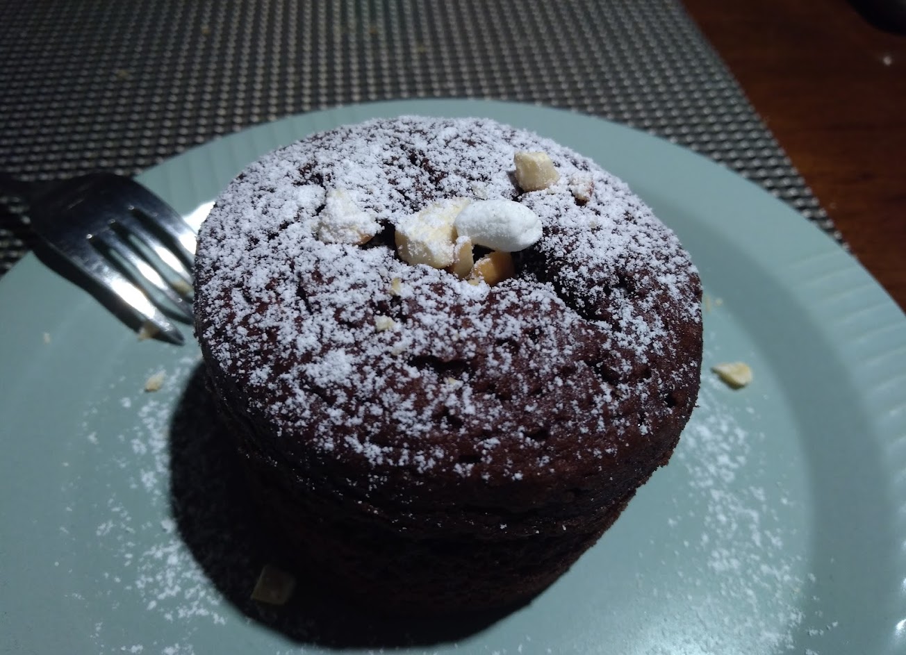 甜點部分熔岩巧克力,我剛好拿到失敗的QQ切開沒有熱熱的巧克力流出導致蛋糕吃起來好乾.可是同桌其他點一樣的都非常成功,整體就好吃非常多~