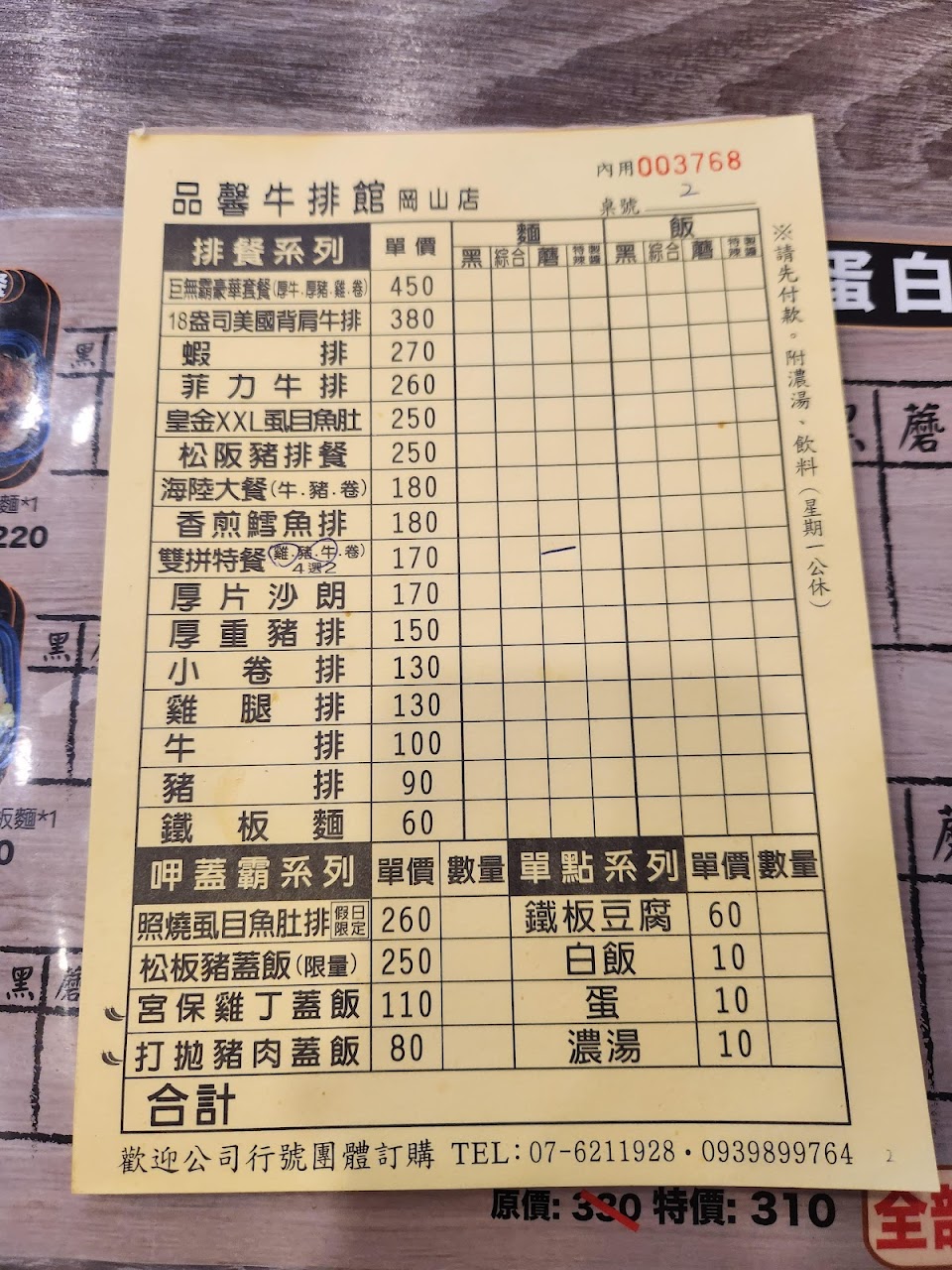 2024最新在地推薦餐廳的菜單_品馨牛排館(岡山店)招牌比臉大虱目魚肚排的菜單、圖片