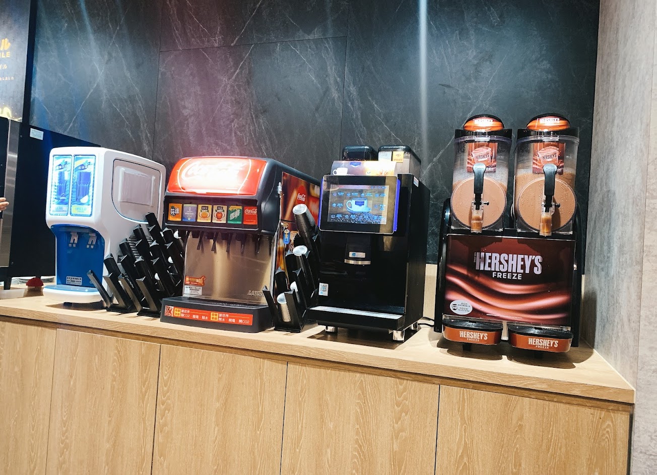 ?有飲料區,可以自己選擇自己想喝的飲料,裡面有一些飲料沒有咖啡因的非常棒。