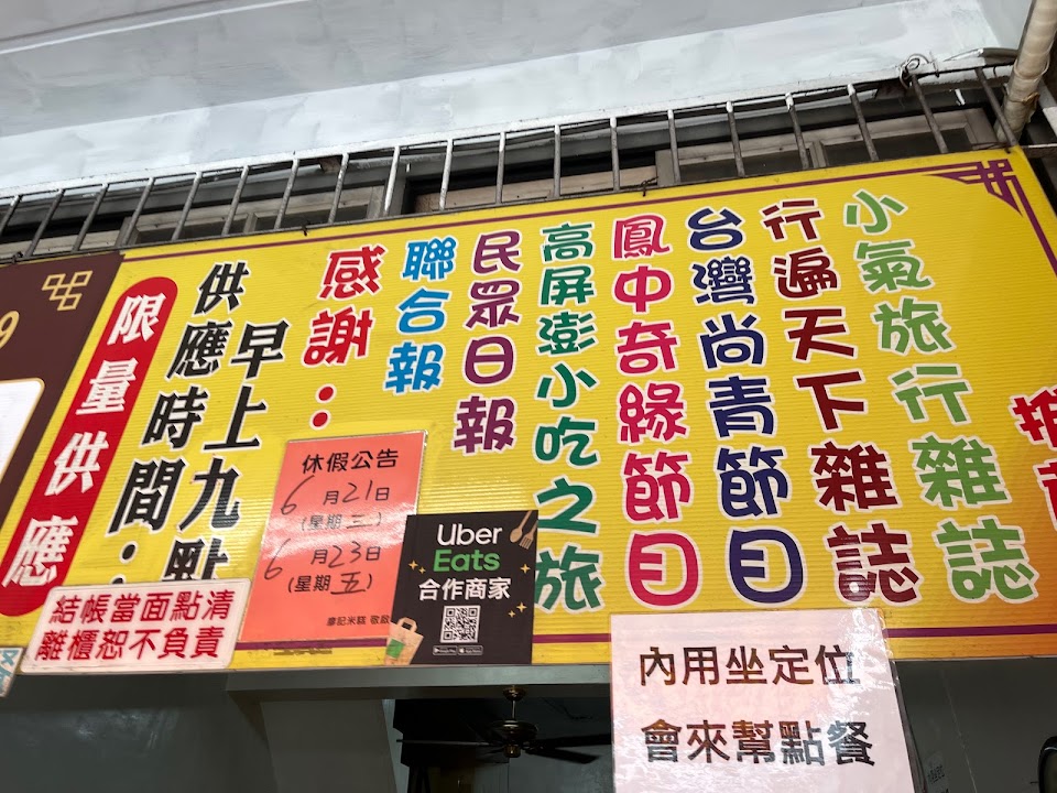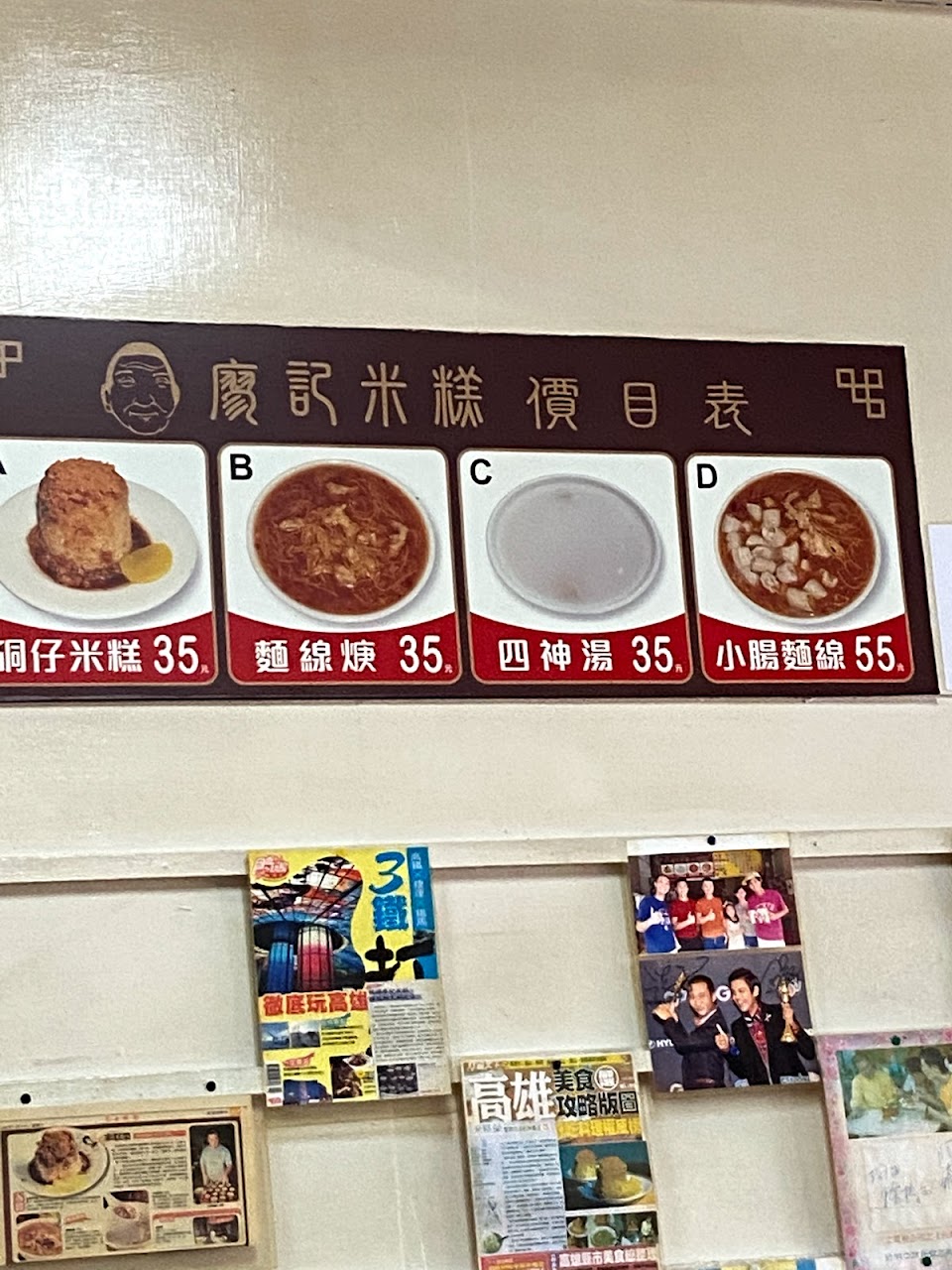高雄必比登美食之一,到店剛好剩下米糕跟四神湯,米糕口感鬆軟調味剛好對胃口,四神湯是只有腸子無其他薏仁的類型,整體推薦值得來試試。