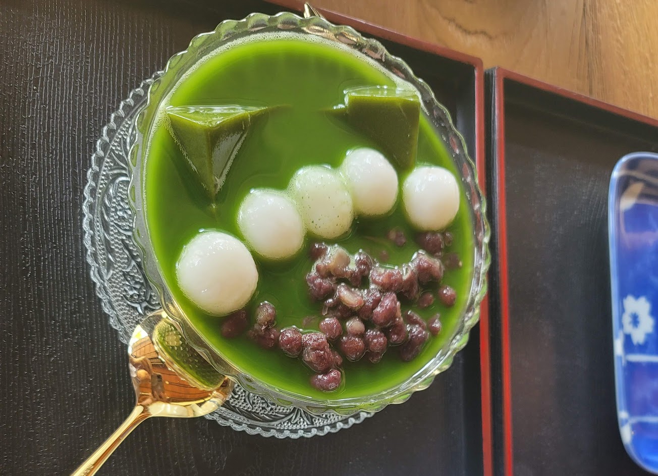 很有味道的地方,抹茶味道可以,但紅豆熟度可以再軟爛一些。