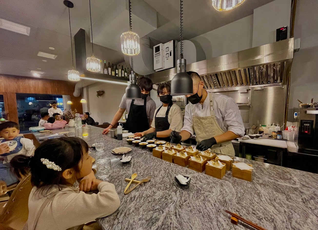 十分推薦可以坐吧台位置,可以享受主廚跟助手在每一道料理上精心烹調及擺盤!!