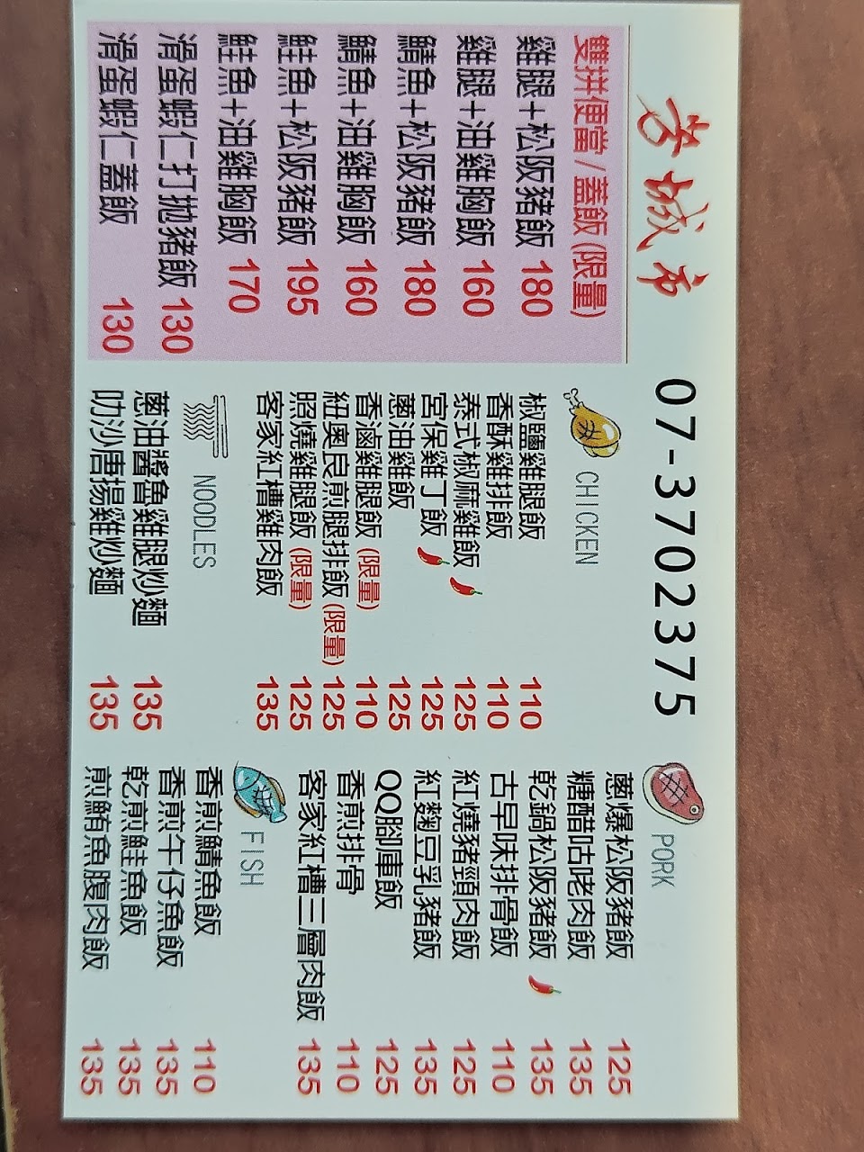 刮包及煎蛋, 清粥小菜, 小菜, 泰式檸檬魚, 小火鍋, 月亮蝦餅, 燒賣, 豆乳雞, 魚翅羹, 合菜