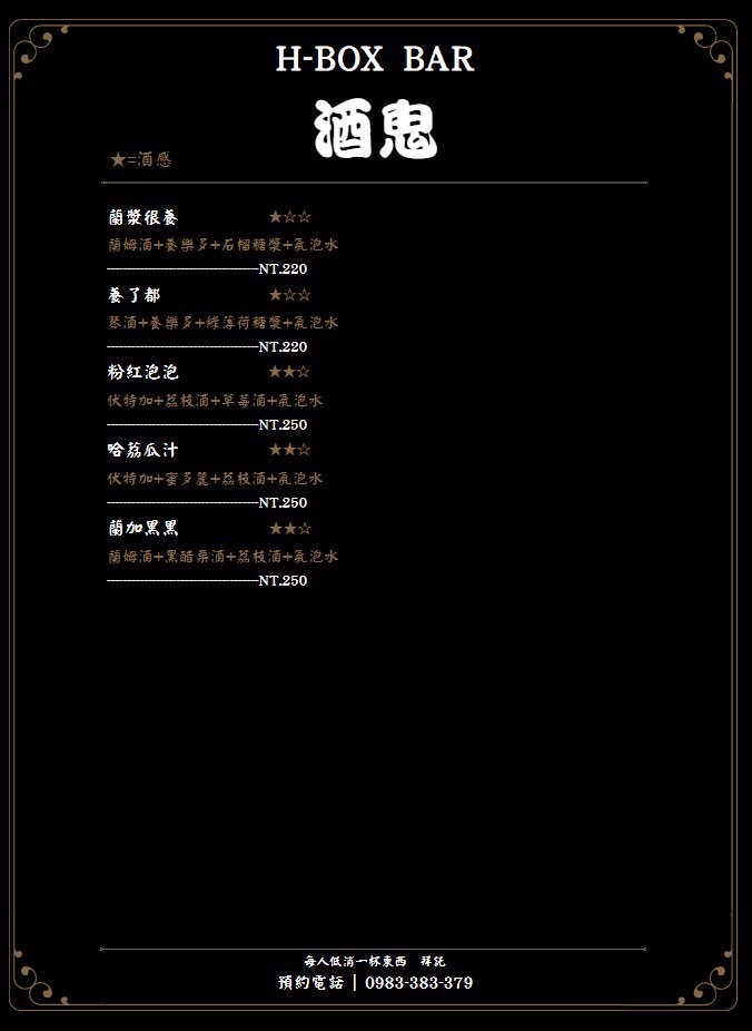 2024最新在地推薦餐廳的菜單_H-BOX人形藝術酒吧2F-採預約制的菜單、圖片