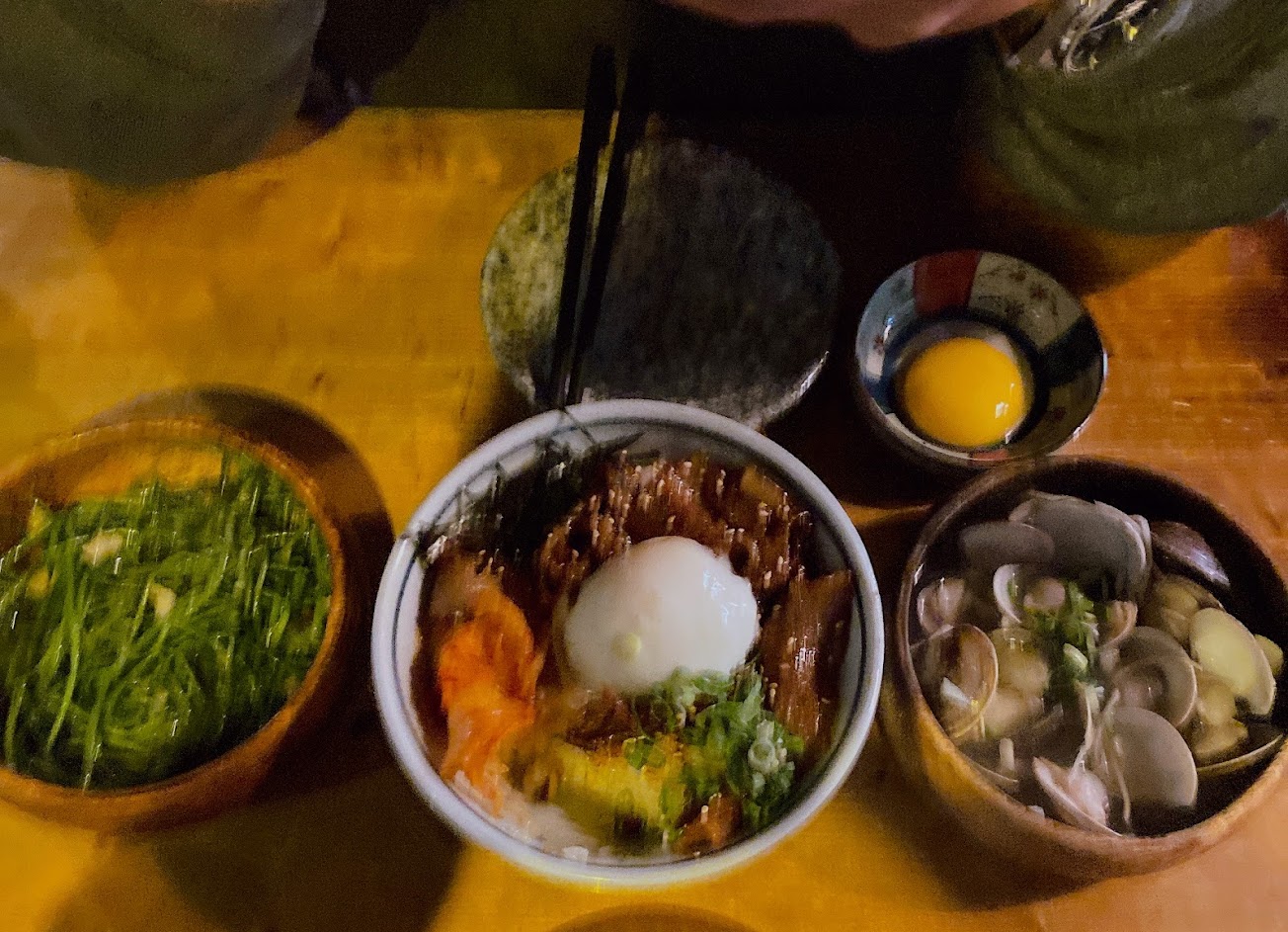 炸銀絲卷 梅酒 男子漢燒肉丼飯 酒蒸蛤蜊