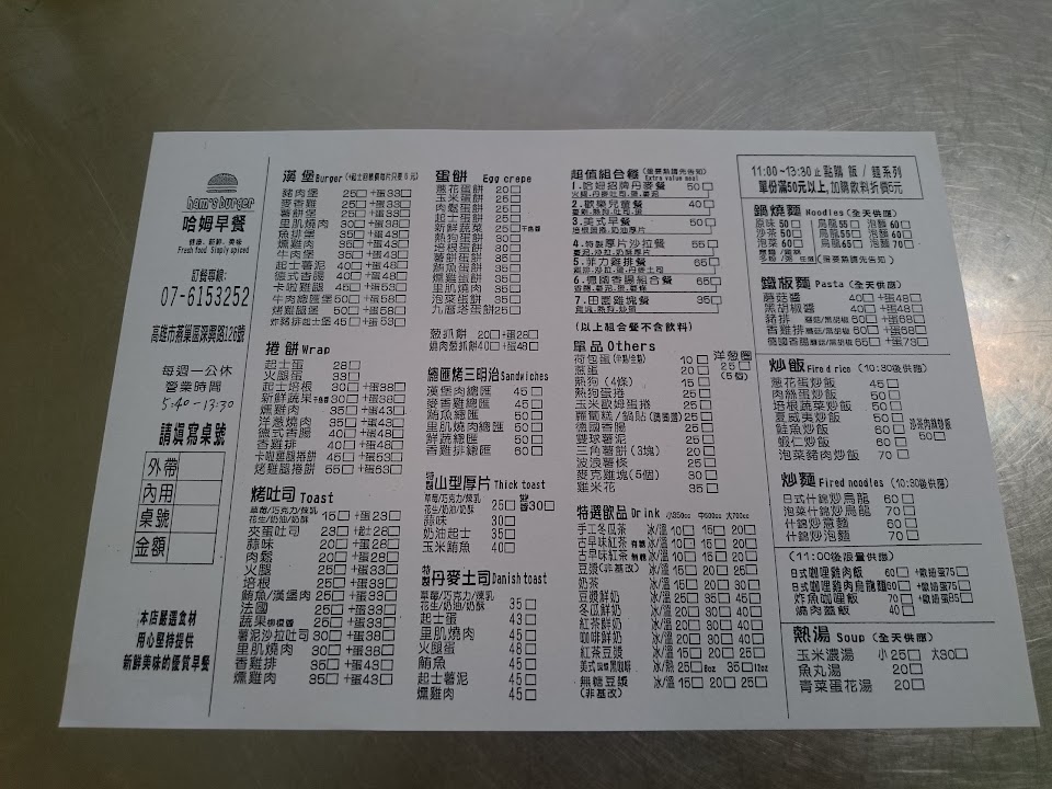 2024最新在地推薦餐廳的菜單_哈姆早午餐的菜單、圖片