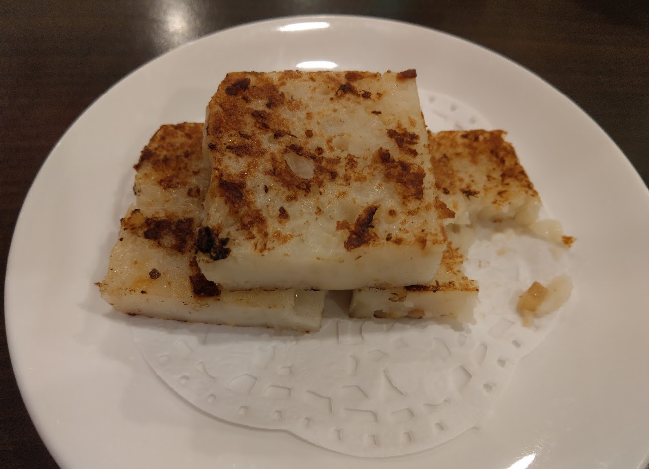港式蘿蔔糕不錯。香氣跟味道都好。但粥品是白粥拌料非熬煮。可惜了。