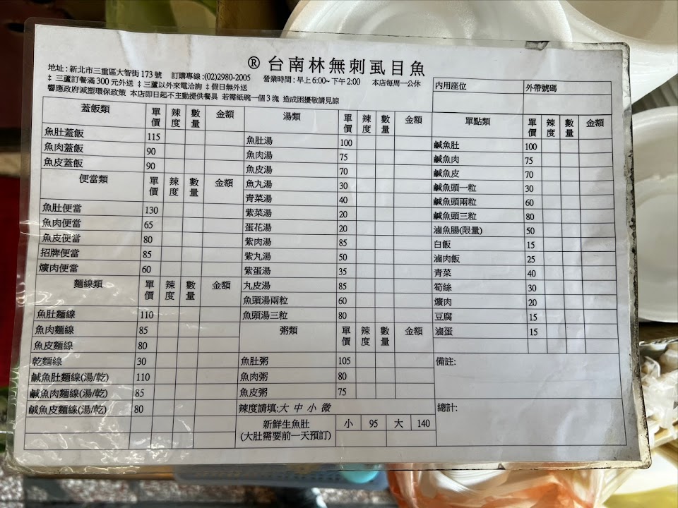 2024最新在地推薦餐廳的菜單_台南林無刺虱目魚的菜單、圖片