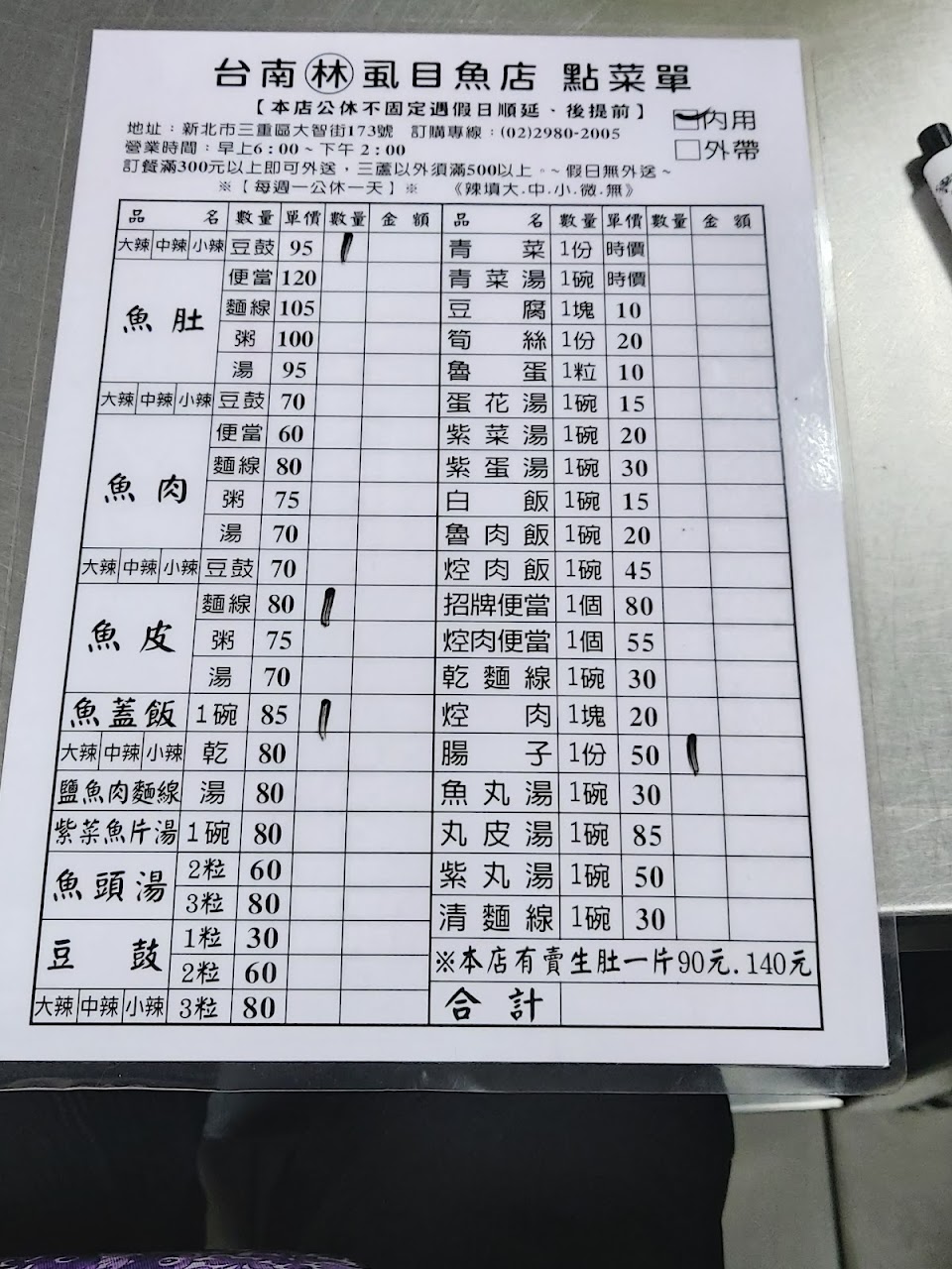 內用要先找老闆寫號碼