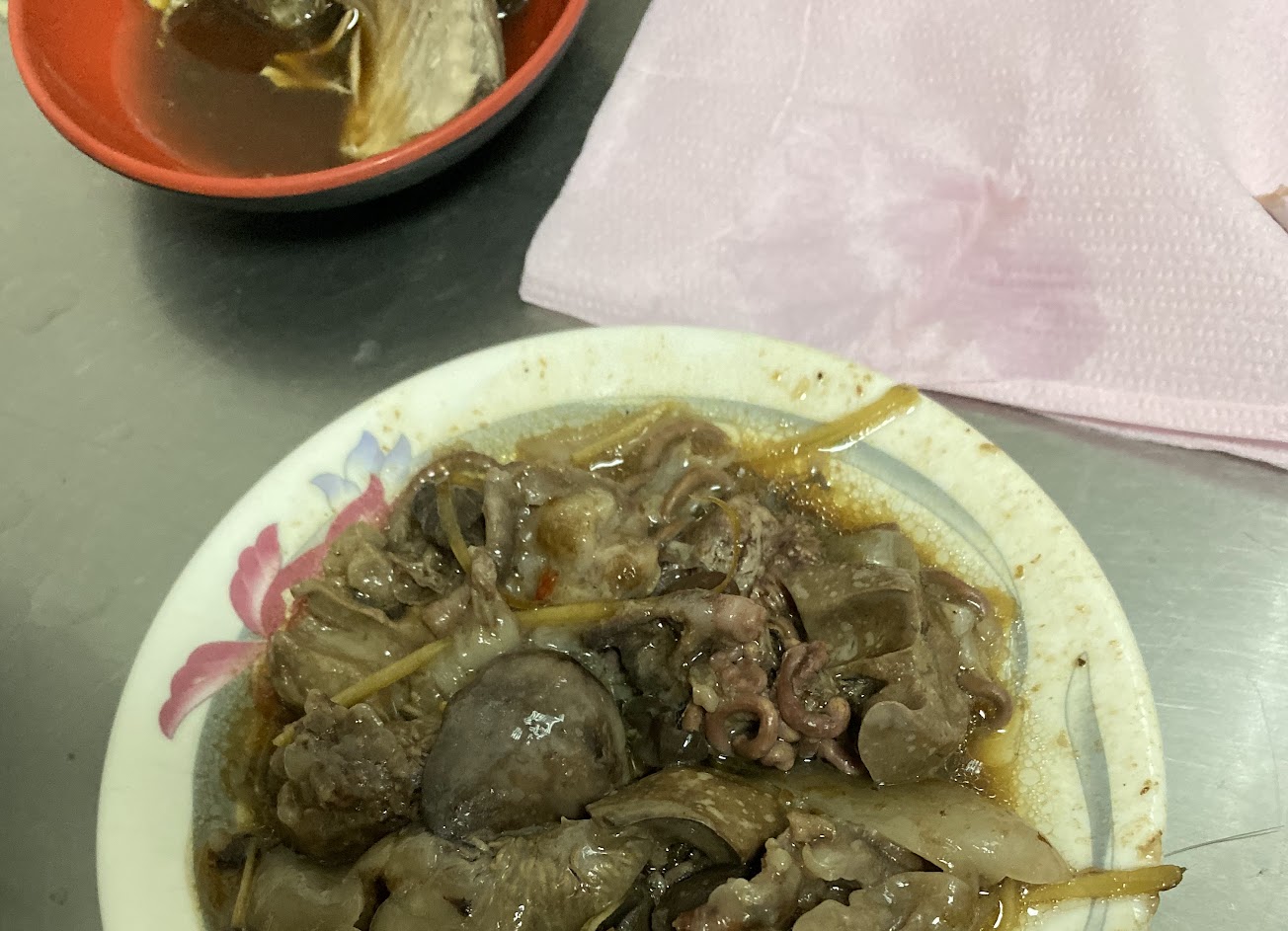 說到這家店就不簡單了,每天的食材,全部都是當天現,,貨的,最離譜是每樣都要現煮,最最最離譜是魯魚腸超級無敵好吃,(最主要是)早一點到店,魚腸一定是吃的到,他們現殺4~5隻魚才有一份,所以點魚腸一定要等,小菜也不錯很,本人今天去吃魚蓋飯,魚肉蓋飯的肉很多,可是魚刺處理的不好,我就吃到3根魚刺,每很有O.5公分長,見意小孩吃要小心點,價位一般。
