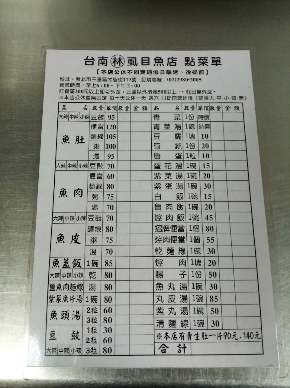 2024最新在地推薦餐廳的菜單_台南林無刺虱目魚的菜單、圖片