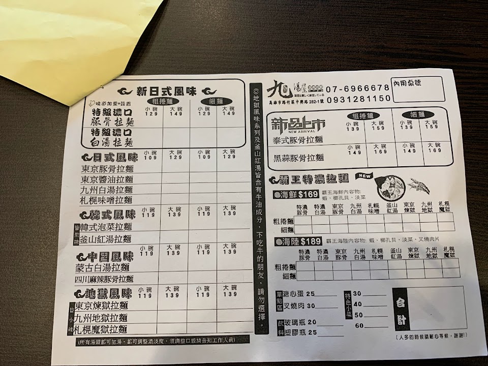 2024最新在地推薦餐廳的菜單_九湯屋日式拉麵 高雄路竹店的菜單、圖片