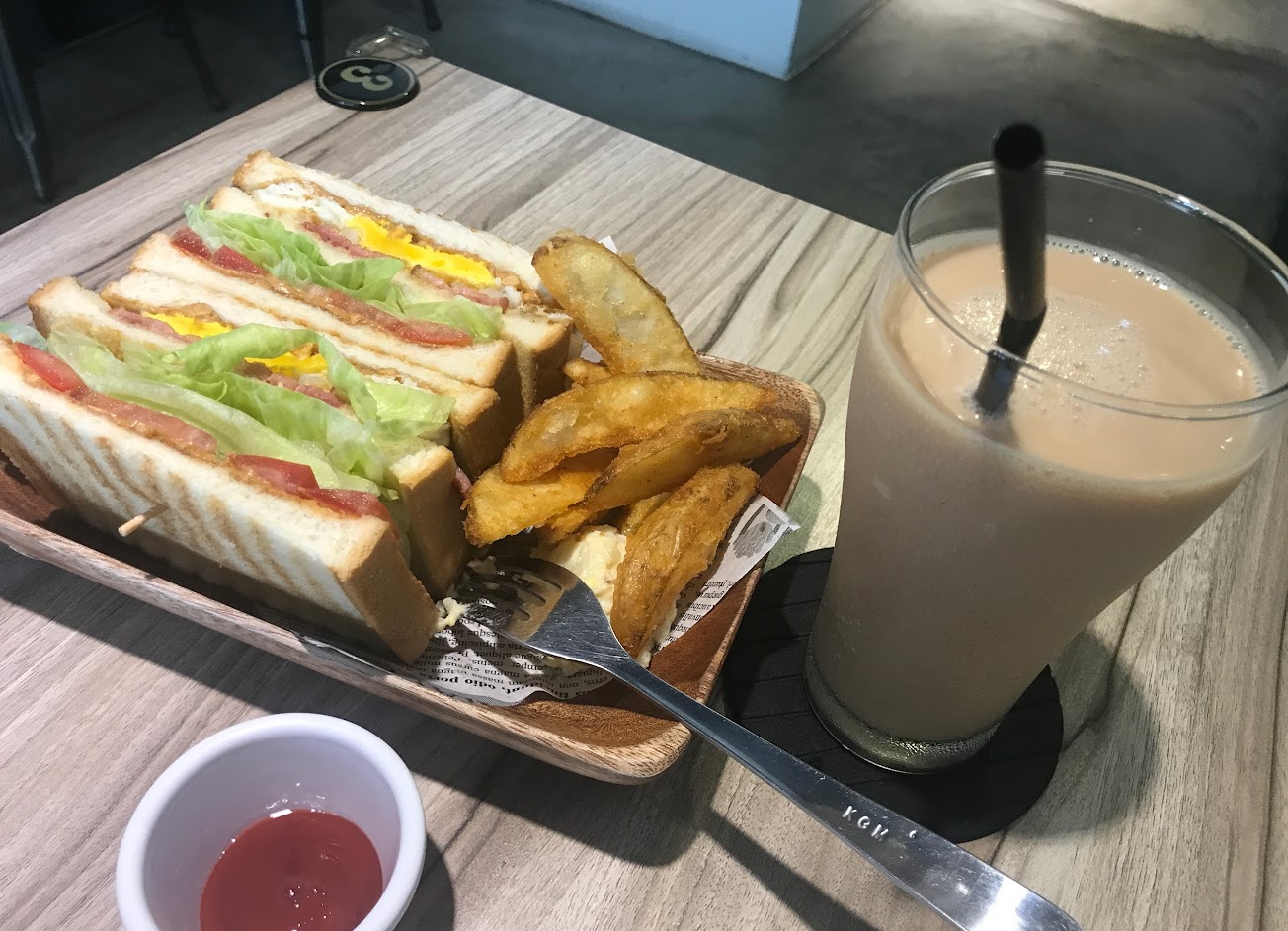 喵王三明治 加 鮮奶茶 ,店家大推的三明治口味 嚐過後其實還蠻普通的。