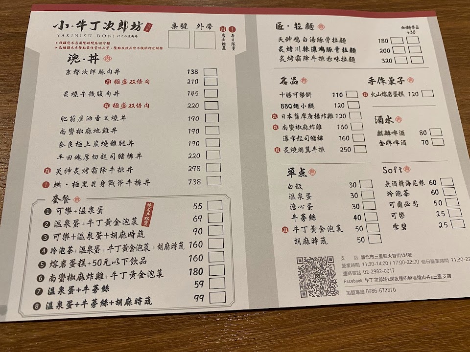 2024最新在地推薦餐廳的菜單_牛丁次郎坊X深夜裡的和魂燒肉丼X三重支店的菜單、圖片
