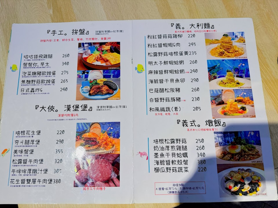 特別的海洋為主餐廳,餐點都很好吃,佈置很特別牆上海龜的畫拍照很漂亮