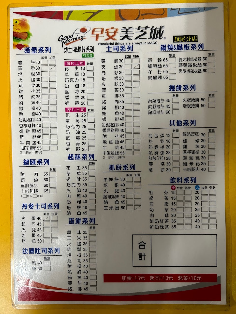 2024最新在地推薦餐廳的菜單_早安美芝城旗山旗尾的菜單、圖片