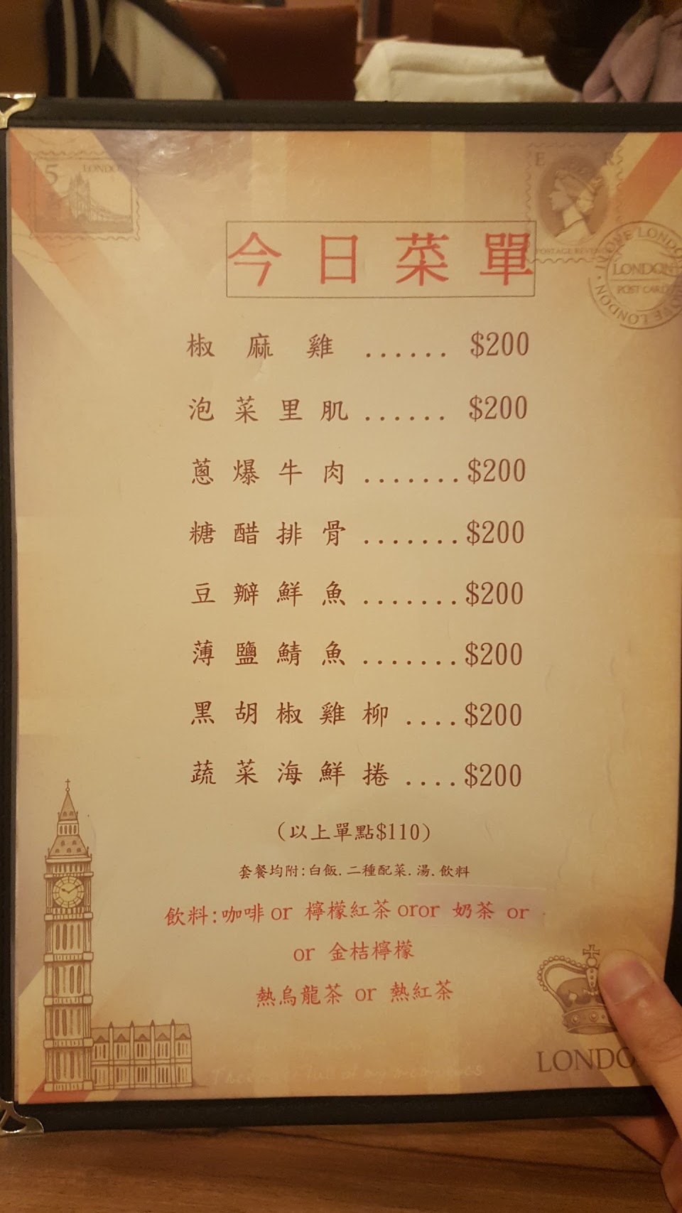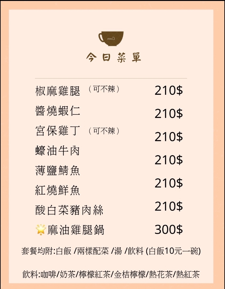 200元為套餐附一杯餐後飲料