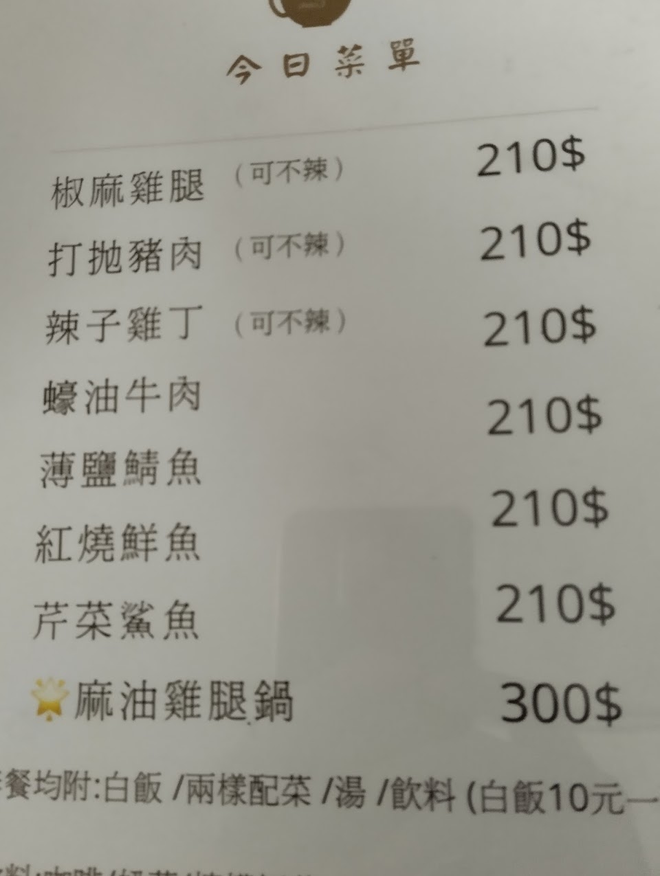配菜每日變化,餐點200元