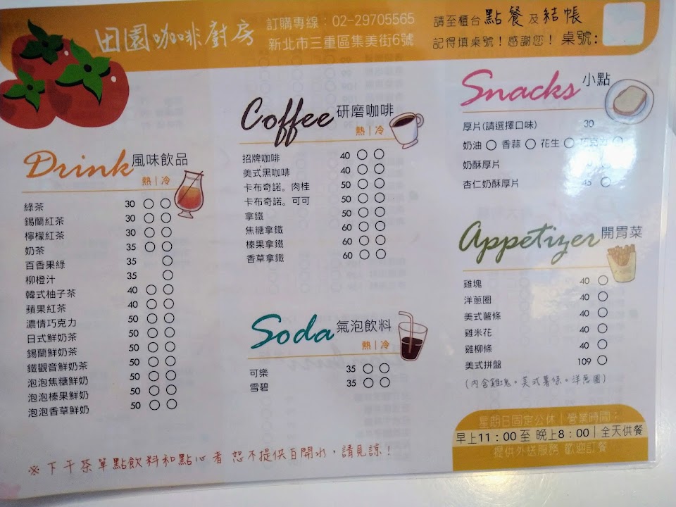 2024最新在地推薦餐廳的菜單_田園咖啡廚房的菜單、圖片