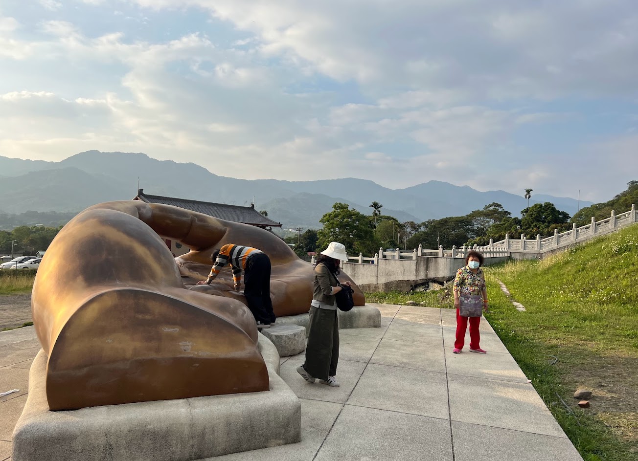 不知道園方的訴求到底是什麼,周遭的銅像除了大佛以外,居然還有“莫拉魯道”、24孝的“乳姑不怠”,一旁的牌樓建築是“天安門”,真的是有點無言……