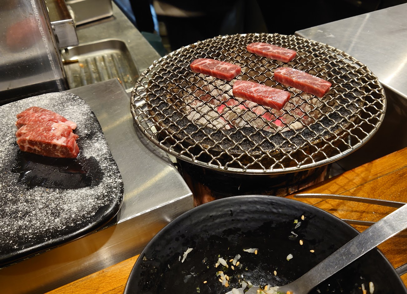 但現場來到覺得也沒到很窄,還很慶幸坐吧檯有人第一時間幫忙烤東西翻面,今天幫我們服務的「小鈁」服務員真的很棒!過程中我們還不小心烤山藥的時候掉下來,她還很熱情的補給我們,今晚的光顧我跟女友一起都非常開心😆