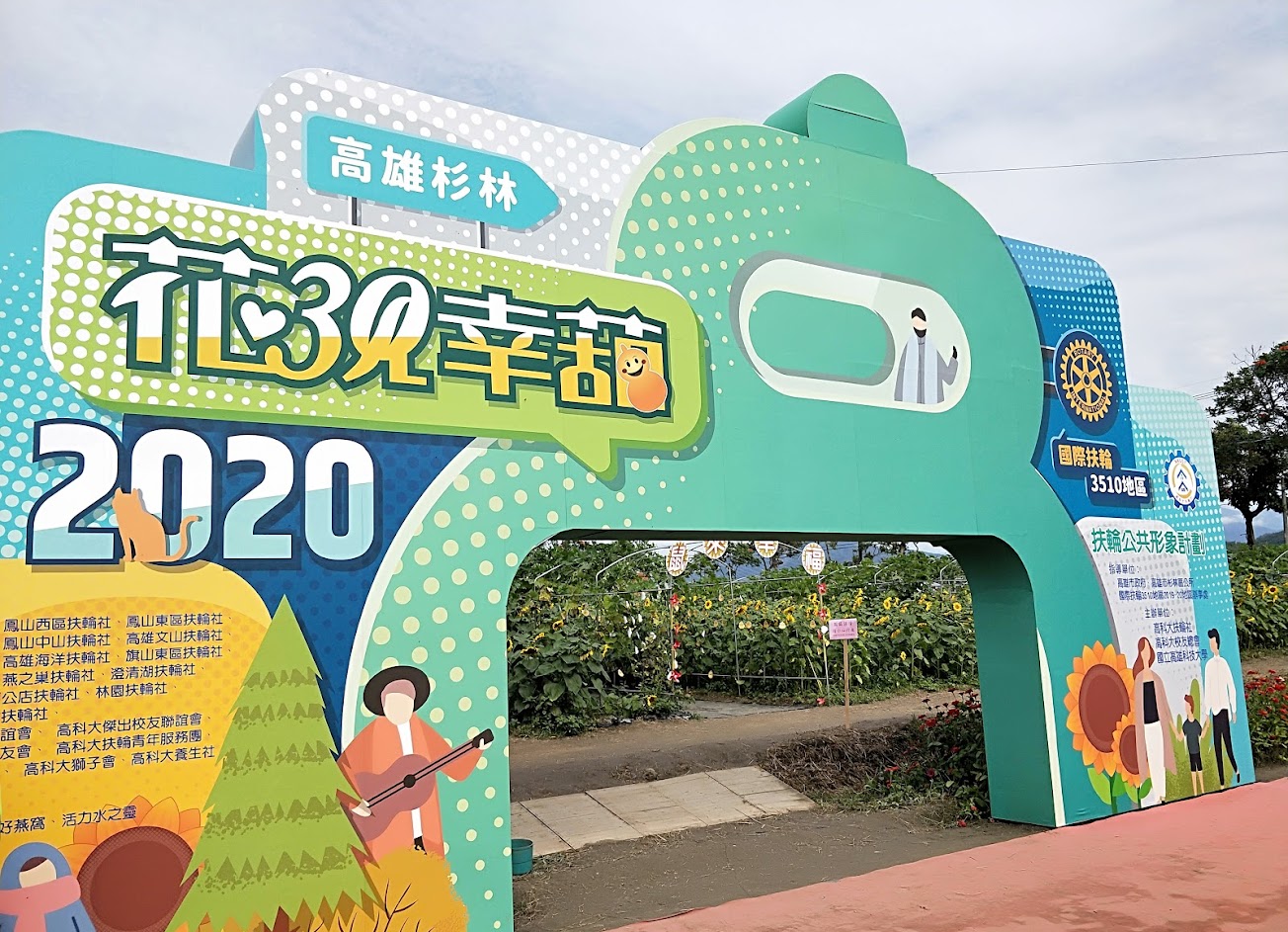 全國最大花海,每年很多人扶老攜有很熱鬧,中有黃色太陽花,及黑色向日葵,非洲菊,波斯菊等等,過年節好去處,順便越過月光墜道,即美濃。料想今年(2020年)會比前年更有看頭,歡迎今年會有更多奇花異草可看。