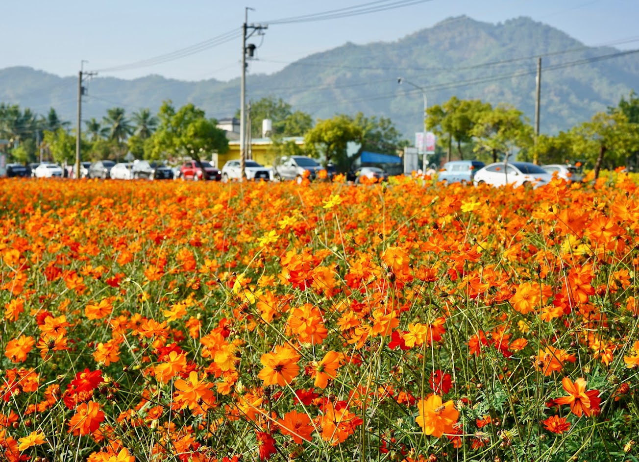 目前花況已開8,9成,有些早開的已經謝了,相較美濃花海要更密集一些,路邊隨意皆可停車,適合搭配美濃景點順便來走走