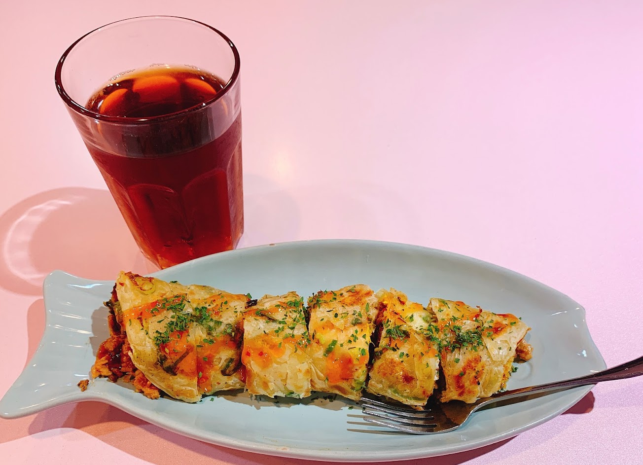 辣雞起司蛋餅料多味道超道地,蛋餅是我愛的那種厚煎的,很有嚼勁又能煎得酥脆!現打果汁也很好喝(推薦「今天很不順」,喝完真的很順哈哈哈)吃得出食材用心,吐司還是用日本蒸氣烤箱,買不下手的家電能在這邊品嚐到,真的非常好吃~