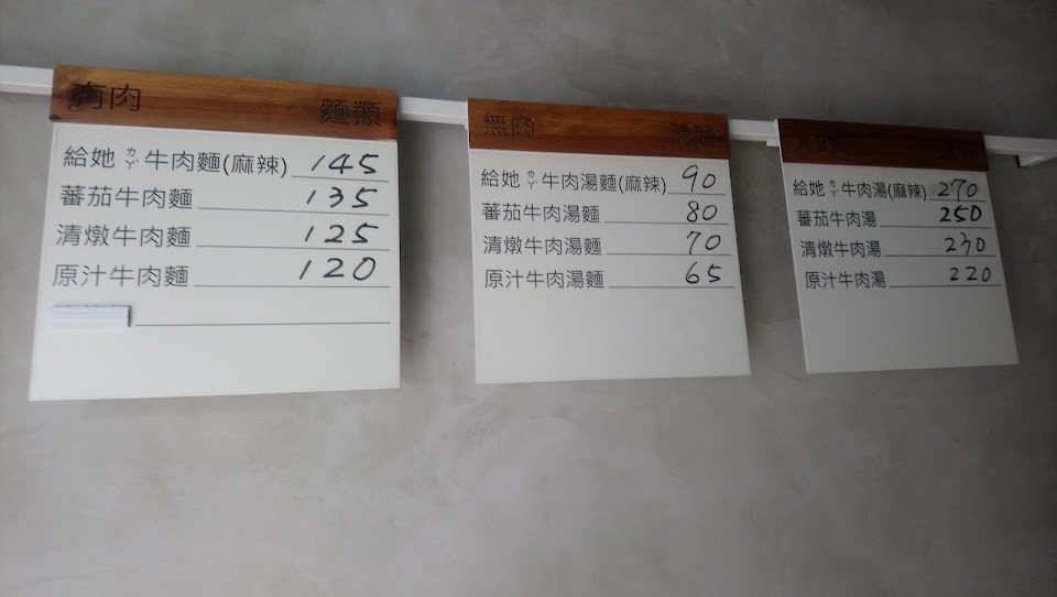 先說結論:值得巴望的美味。 這是我此生吃過最難吃到的店, 好幾個月才開幾天! 前一天撲空17:40就賣完了有夠無奈, 也因此對她有著極高期待! 內用一定要在現場, 原因是她出餐的時間可能會提早。 小菜只剩韓式泡菜,不會太辣,很開胃, 份量剛好,25塊不會太貴。 我點的是給她ㄌㄚˋ牛肉麵, 這家很罕見地用鋼碗裝麵, 餐碗是復古風格,店內卻是工業風,十分特別。 先來介紹這碗麵的最大優點,湯。 喝第一口湯的印象是: 「就這樣?味道也太淡了吧!」 有點失望畢竟等待已久, 但第二口就嚐出她的功夫:麻而微辣。 麻辣怎麼可能帶出牛肉的香氣呢? 給她ㄌㄚˋ就是辦得到。 再多嚐幾口發現她的麻辣尾韻居然有股清爽感! 這味覺衝突是怎麼一回事? 店內空調不強,這天氣吃麻辣應該會滿身大汗; 可是並沒有,代表店家在湯裡有獨門秘方, 這秘密就交給美食家來解開吧! 牛肉很有誠意給了六大塊,軟嫩清香, 肉質在百家爭鳴的牛肉麵界算是佼佼者, 是這碗的第二亮點。 最後麵稍硬而有彈性,合適但並不特別出眾。 建議如我一樣重口味的食客, 可以加一大匙牛油以增加風味。 問這間店能有多美味? 看我把湯都喝光, 還有牆上客人享用的噴濺痕跡就知道。