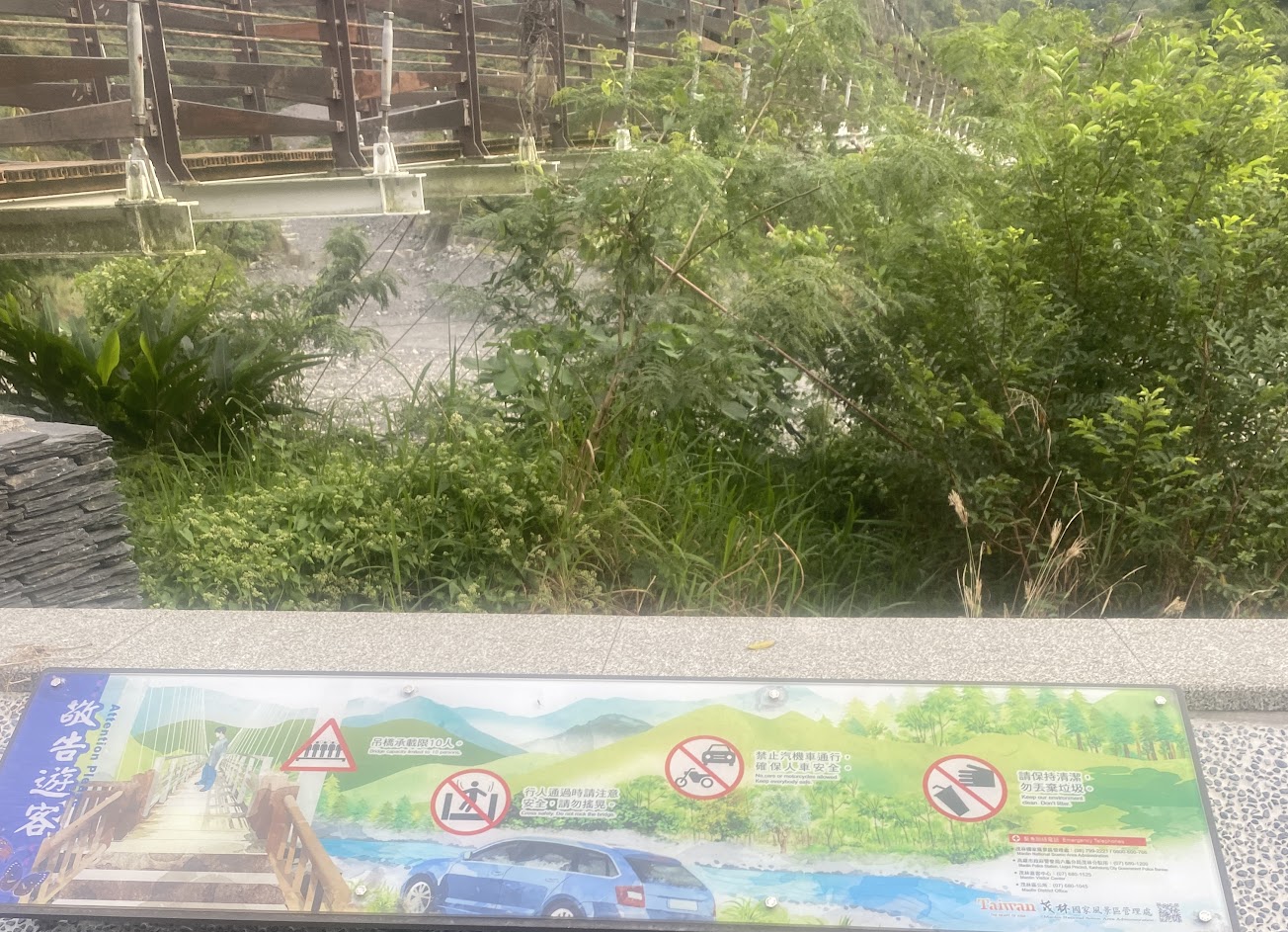 沿著路往下走有吊橋,可以走到情人谷瀑布,目前是枯水期,所以沒有瀑布。