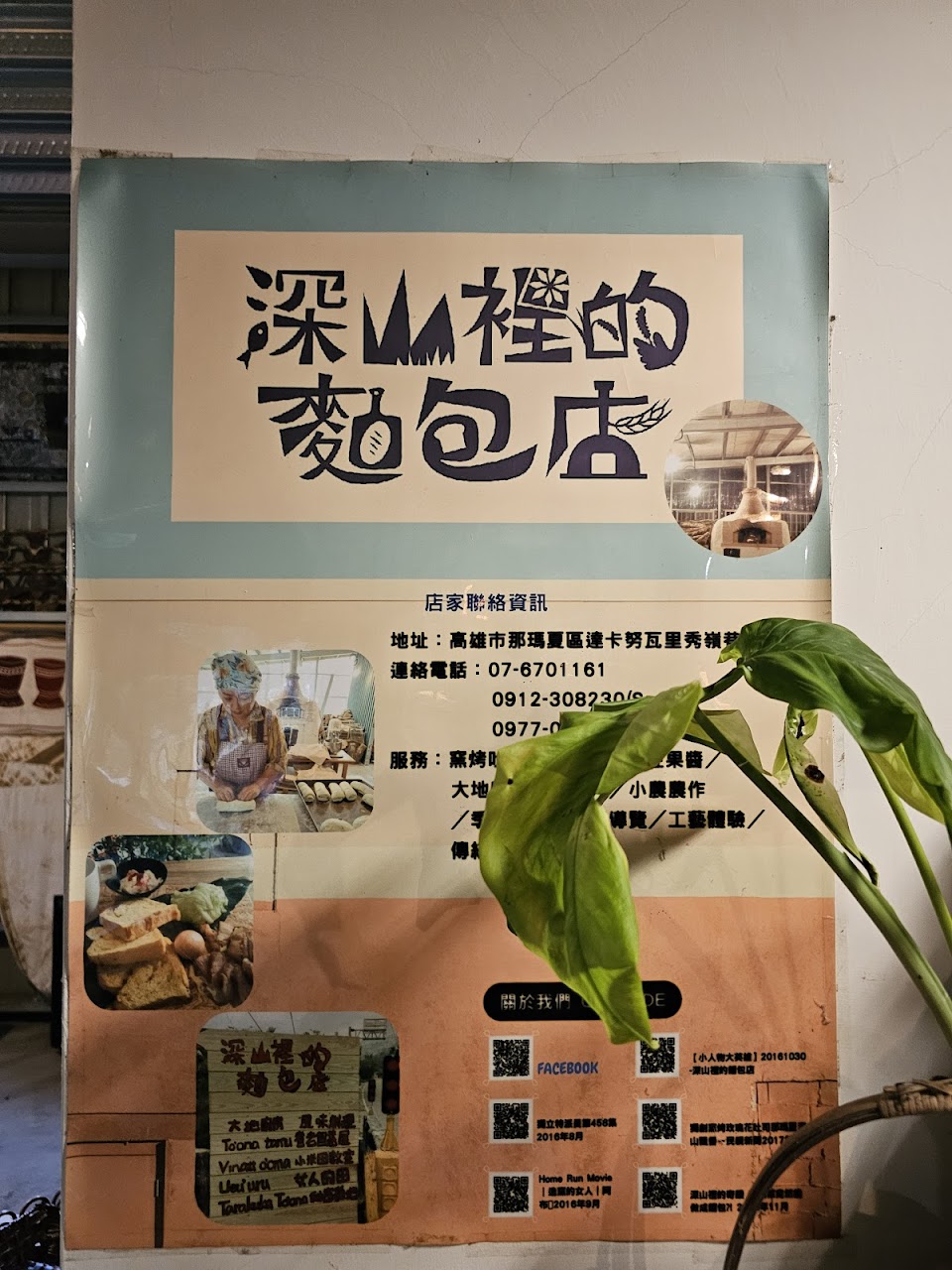 ?深山裡的麵包店如其名真的在很深山裡,在高雄那瑪夏的達卡努瓦部落。麵包店與大自然為伍,耳邊聽到蟲鳴鳥叫聲,眼裡看到一片綠意盎然,蝶兒翩翩起舞,店裡空間很大很舒服可以坐著休息喝杯咖啡吃吃麵包。