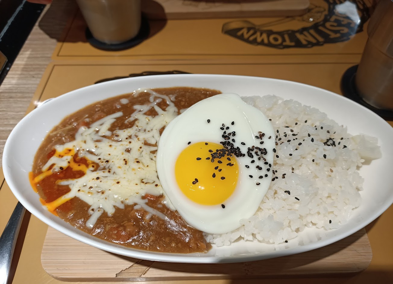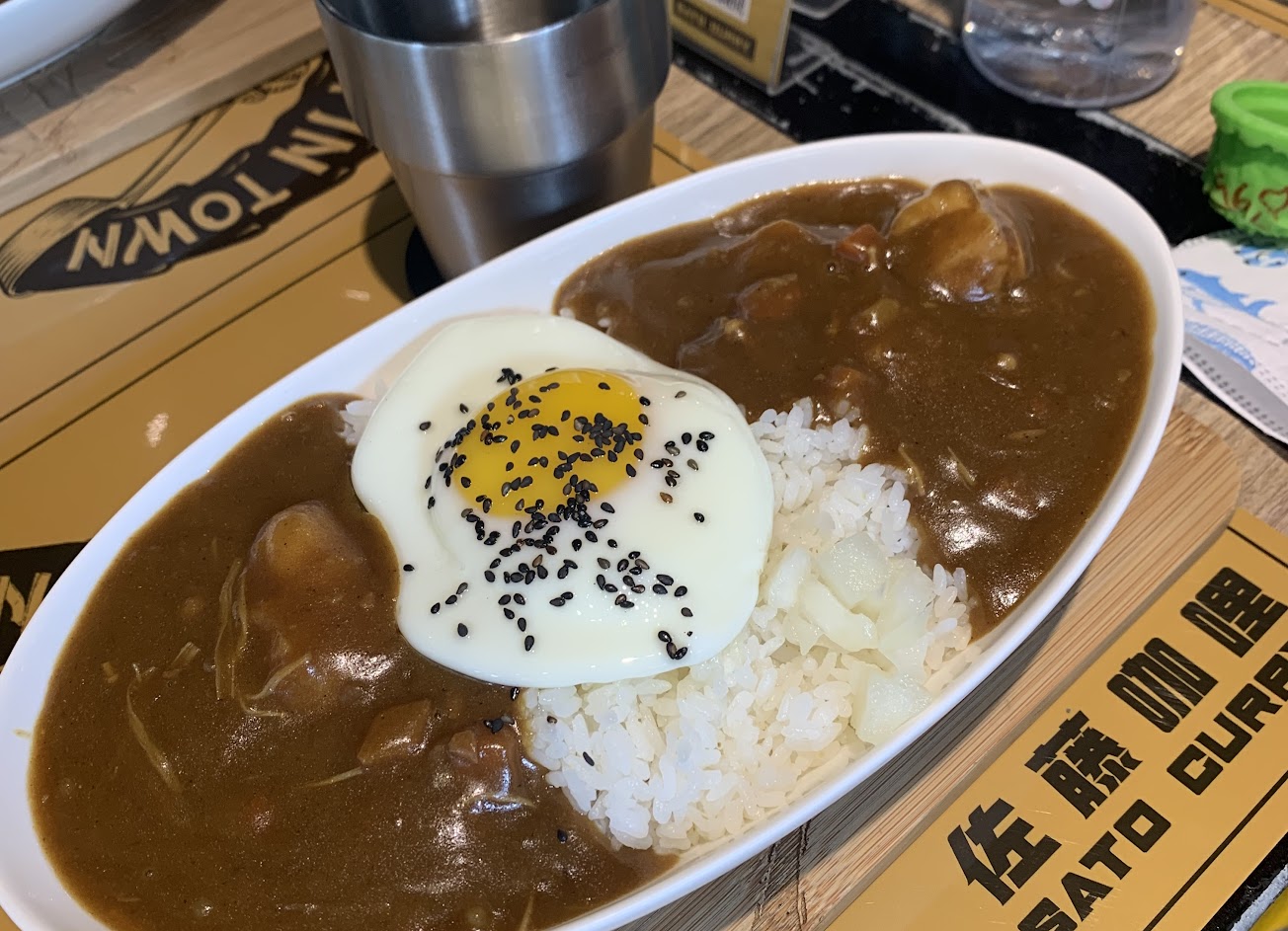 餐點有附半熟的荷包蛋剛好伴著白飯跟咖哩一塊吃