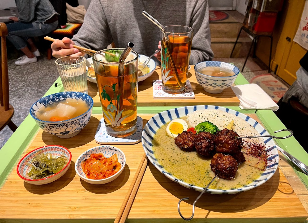 用料實在,豬肉丸多汁不油膩,日式咖哩微辣但是層次豐富,最後的甜點雞蛋糕更是紮實又好吃。大推!