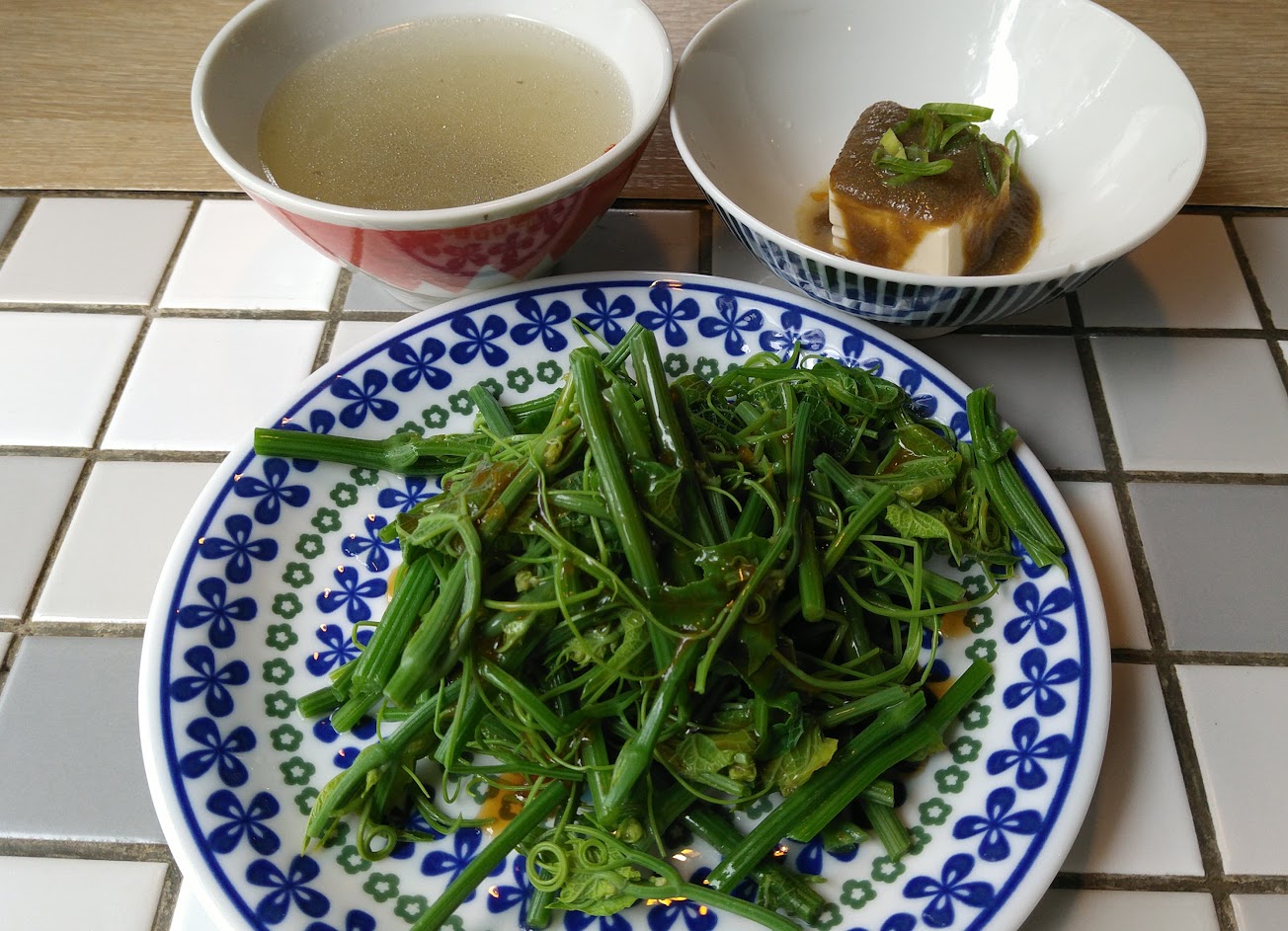 適合口味清淡高雅的人士 (本身是重口味粗暴人士) 我們點了 壽喜豚肉套餐 包含冷泡茶,湯,甜點,小菜 胡麻小黃瓜 眼球奶茶。 點評 豚肉壽喜燒是很普通的味道,我大概也做得出來,沒什麼特別的,建議不要點 冷泡茶有水準 湯應該是牛蒡冬瓜枸杞湯,這個也很不錯,牛蒡有入味 小菜是醃漬苦瓜,非常有水準,我沒吃過的口感跟味道,這個大推,微酸甜但苦味還在,喜歡苦瓜的一定超愛(就是照片這張) 甜點是布朗尼,兩個字難吃 胡麻小黃瓜,兩個字普通 眼球奶茶,普通偏淡 那坨芝麻奶烙芝麻跟奶酪,有點分開的味道