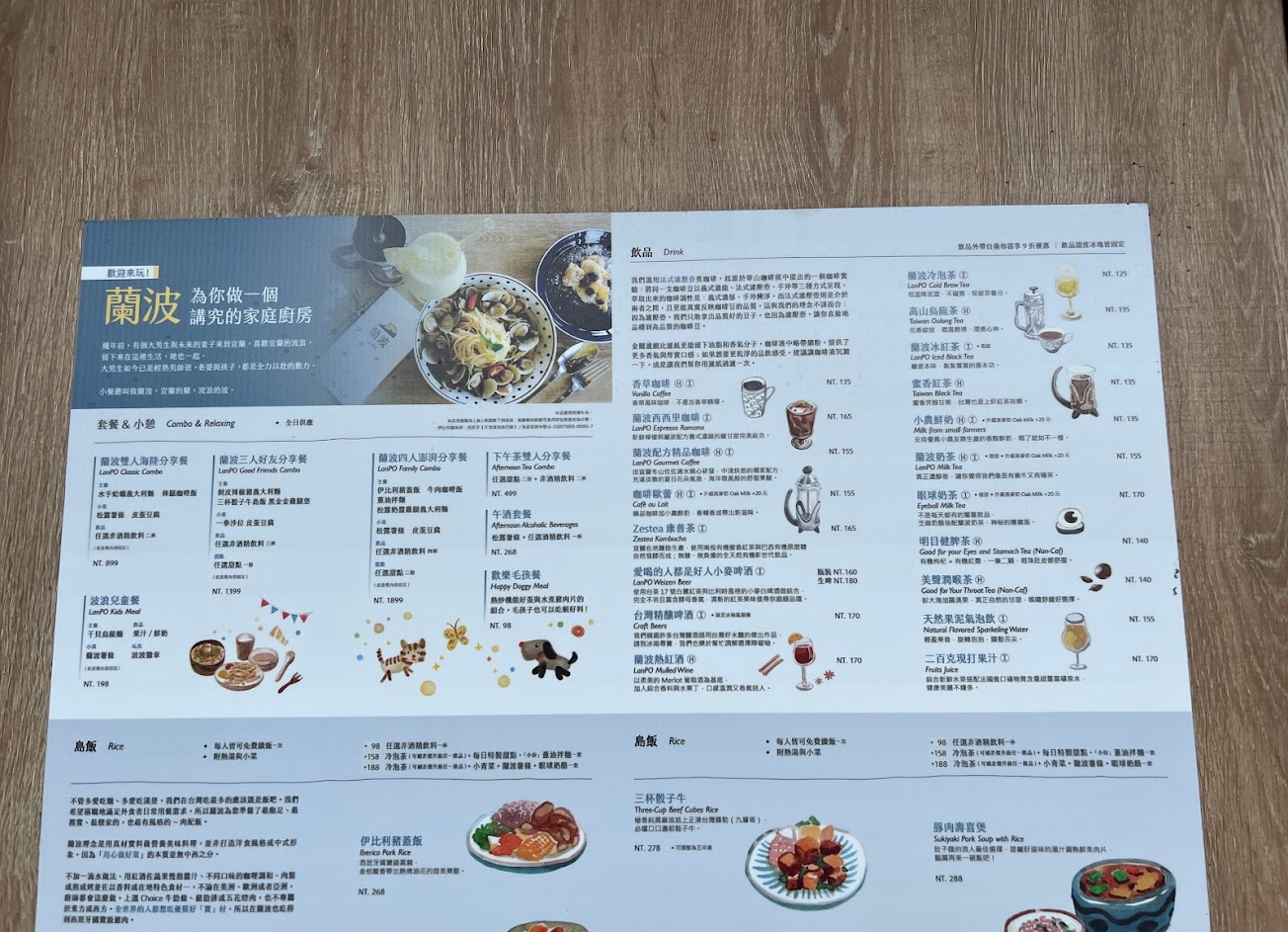 斑駁皺皺的菜單訴說著蘭陽風味與海島風情,再豐富的文本也需回歸食材的本質。蔥油雞飯的肉非常爛柴,上面精緻的金棗醬符合著菜單上所訴的蘭陽風味。看了一下評論前兩個月就有人反應過,應該不是個人沒有符合大眾口味的問題。松露雞腿義大利麵麵體溫度不均,口感有入味,但跟7-11波塞隆那的義大利麵比起來只差了甜椒醬的爆香與高貴奢華的松露醬點綴。我想以上都可以是個人口味不符合大眾吧?但餐點出餐要40分鐘,吃的喉嚨又乾又渴,告知是否能先上飲料也等快30分鐘遲遲未上,最後告知前台服務人員不用退費餐點也不用上了一臉茫然,一句不好意思也沒有,不是我們要為難需同時點餐結帳收桌做甜點的服務人員,不過吃飯就是要吃飽要開心,平日中午這樣的水準令人失望,我想蘭波價值最大的敗筆就是旁邊沒有sea over here吧?~一顆星給辛苦縮潮的服務人員。 餐點:1 服務:1 氣氛:1