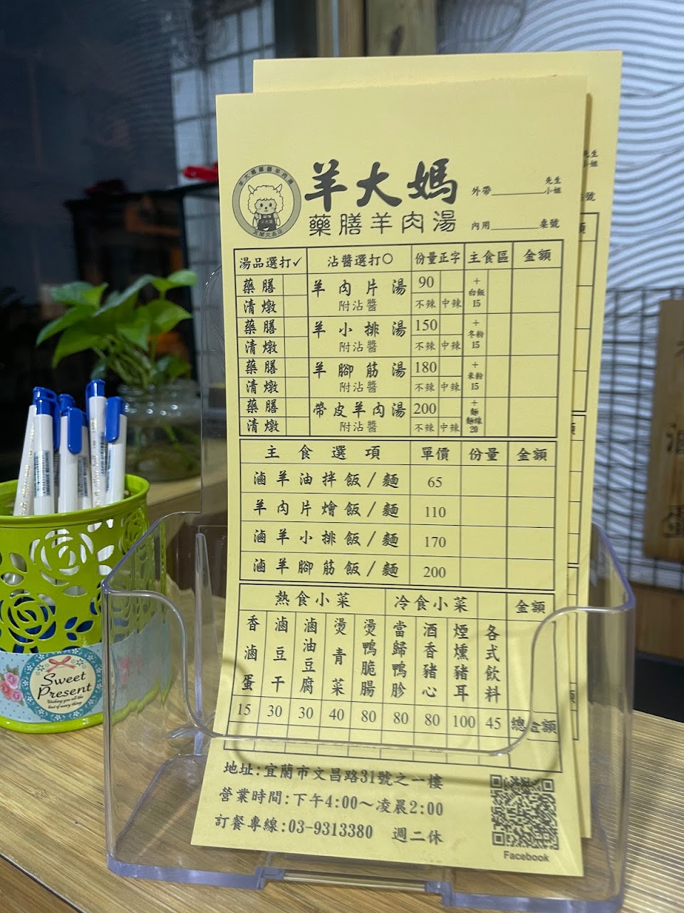 價格實惠,重點湯頭藥香濃郁,羊肉也無不新鮮的羊騷味,雖加湯需要另付30,但絕對值回票價,下次來宜蘭會再光顧,祝生意新隆。
