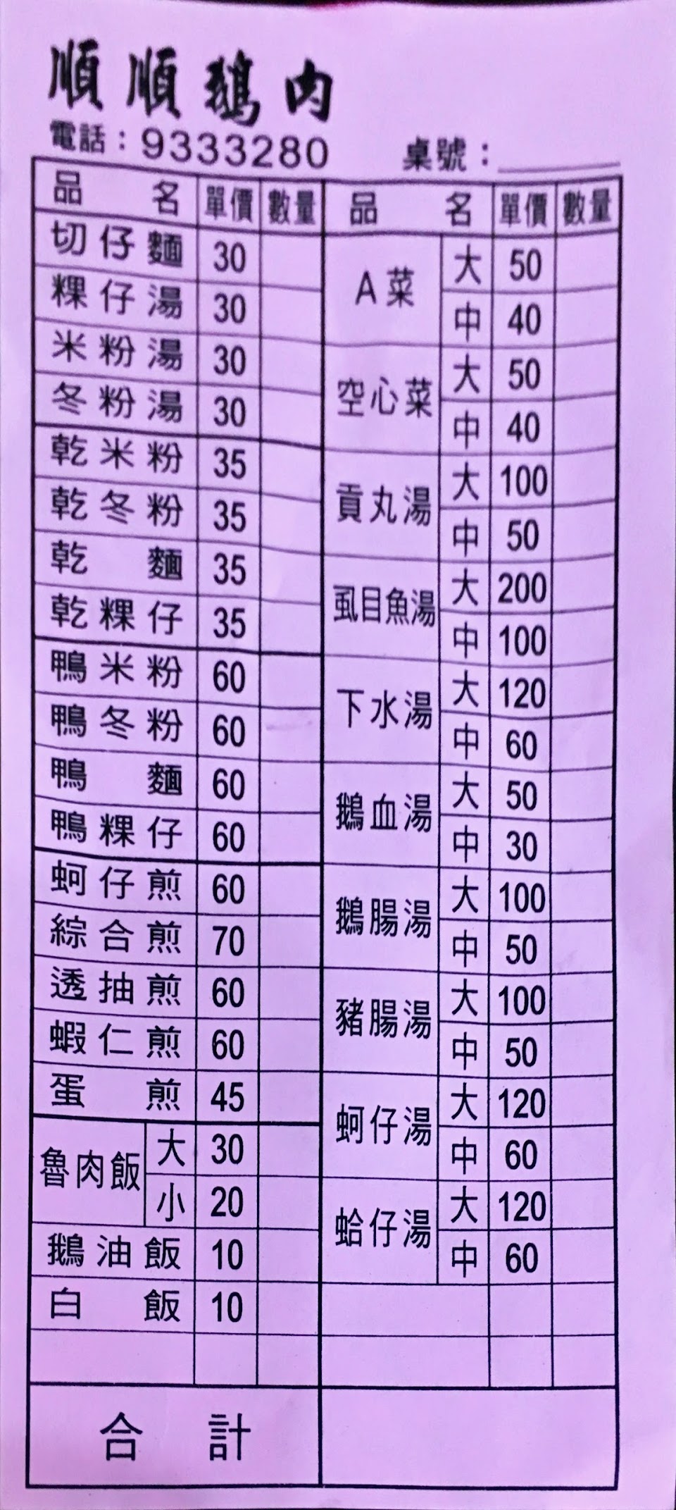 2024最新在地推薦餐廳的菜單_順順鵝肉大王的菜單、圖片