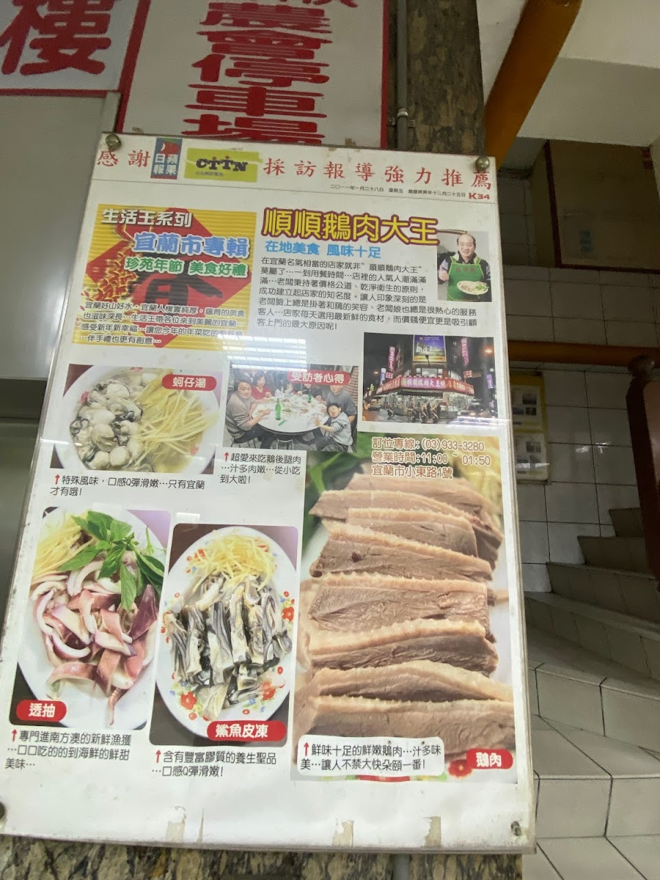 徒步環島來到宜蘭 必吃的老店順順鵝肉 感謝老闆柏豪哥熱情的招待 下次來到宜蘭一定會再來訪的!