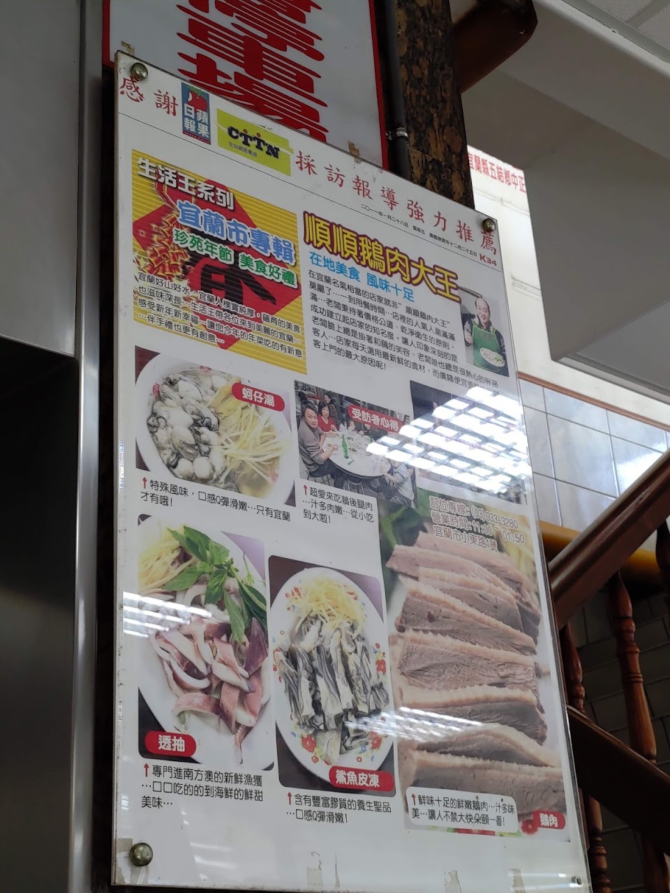順順鵝肉確實是來宜蘭必吃的平價美食,宜蘭好山好水所以飼養的鴨與鵝真的是健康肥美。蚵仔煎、鵝肉冬粉、鯊魚煙都非常好吃,服務很親切,唯美中不足的是地板相當的滑,需要非常小心地行走。