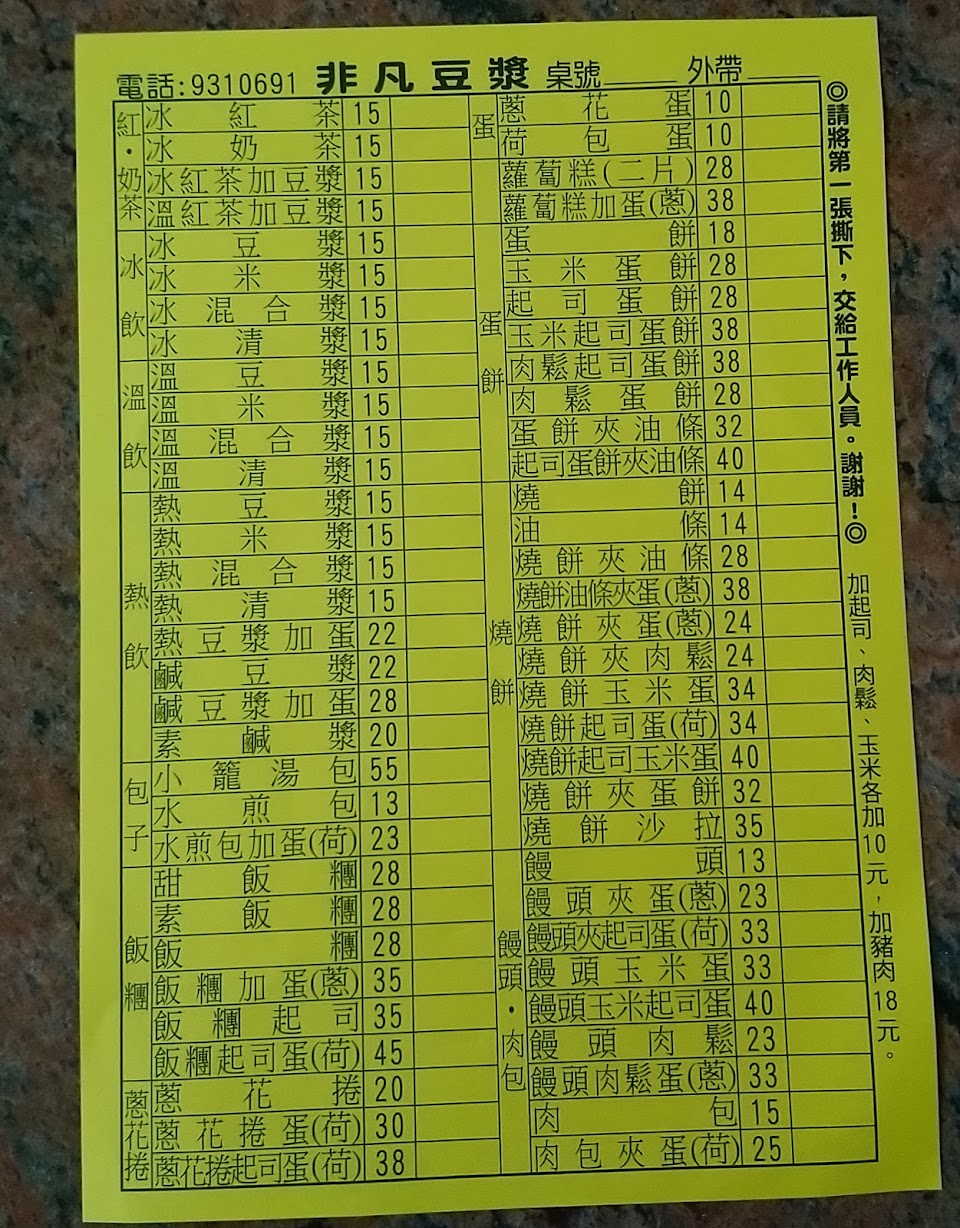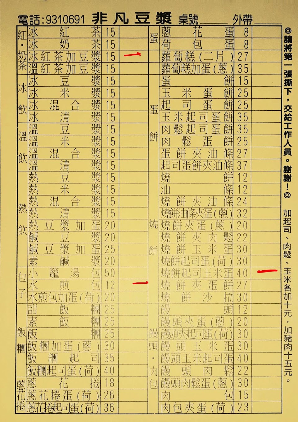 2024最新在地推薦餐廳的菜單_非凡豆漿的菜單、圖片